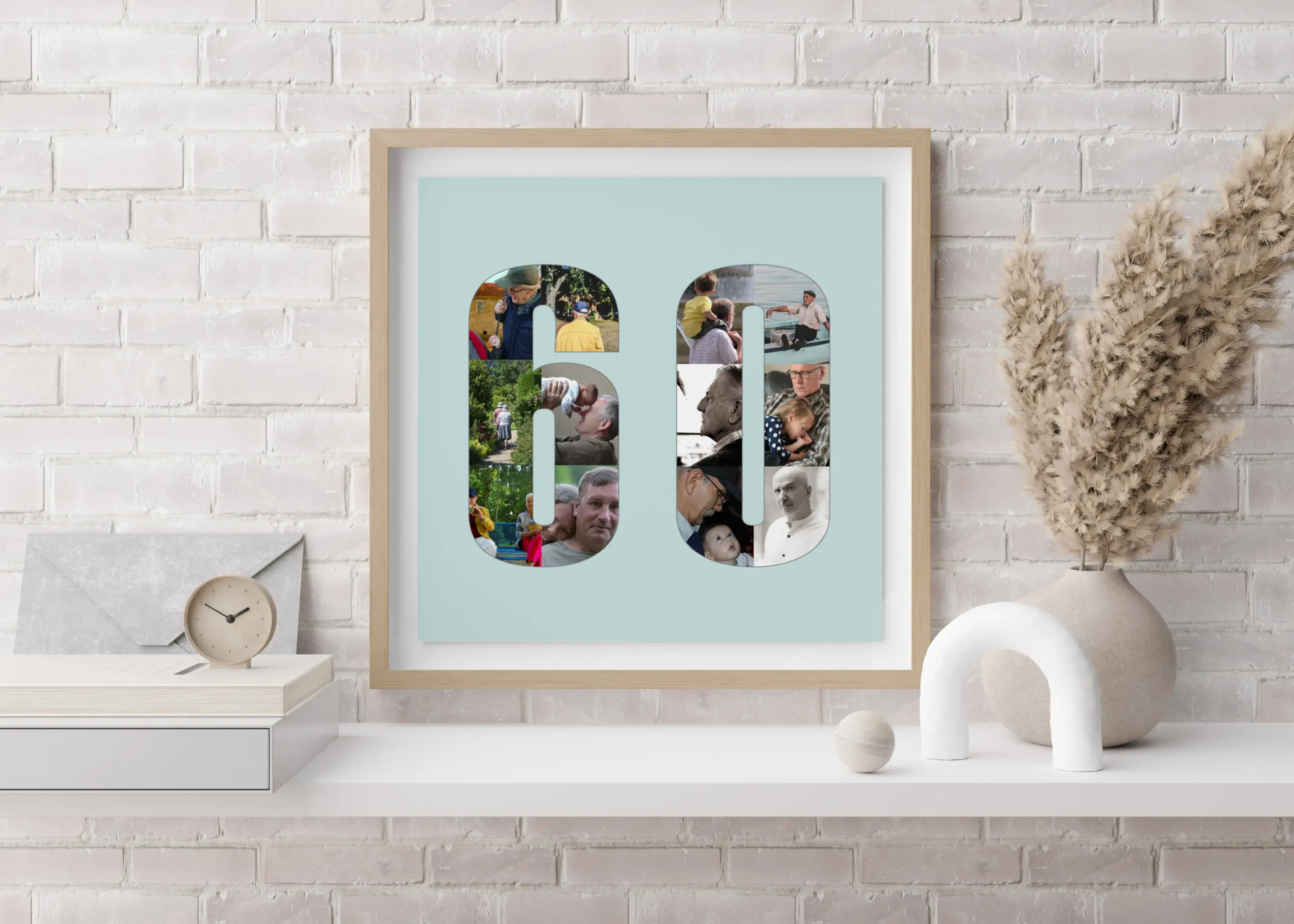 Celebrate 60 with a photo collage! Unique gift for birthdays or retirement occasions.