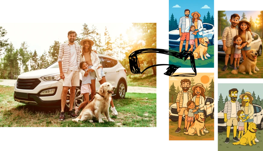 Choose an image style and aspect ratio, upload your photo, and experience the magic of AI transformation. Your image is sent once to our AI service (OpenAI, USA) and returned as an artwork.