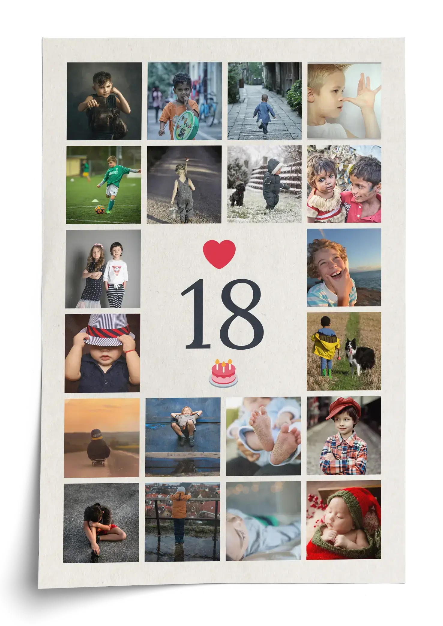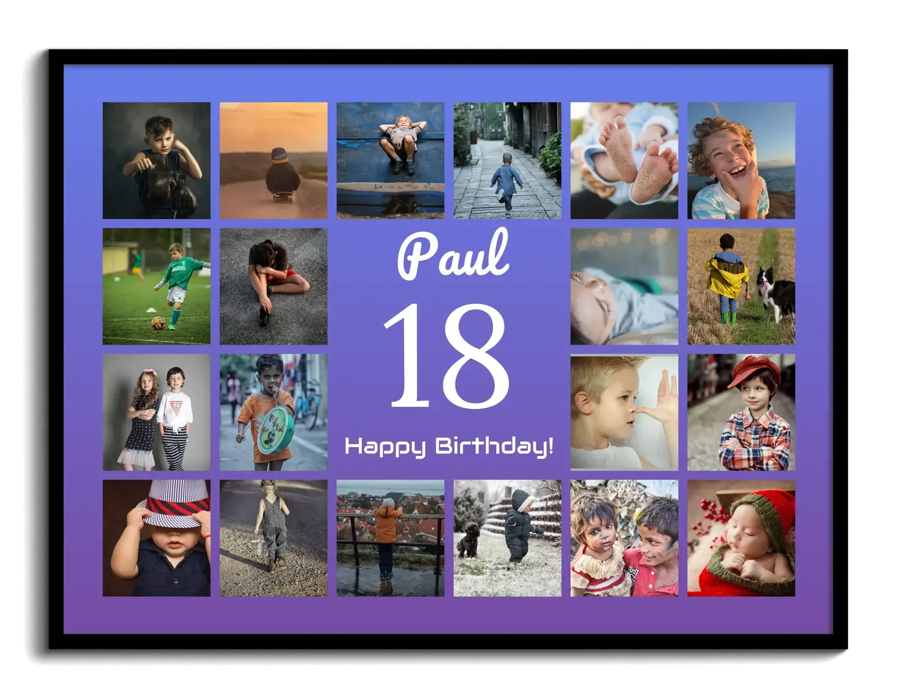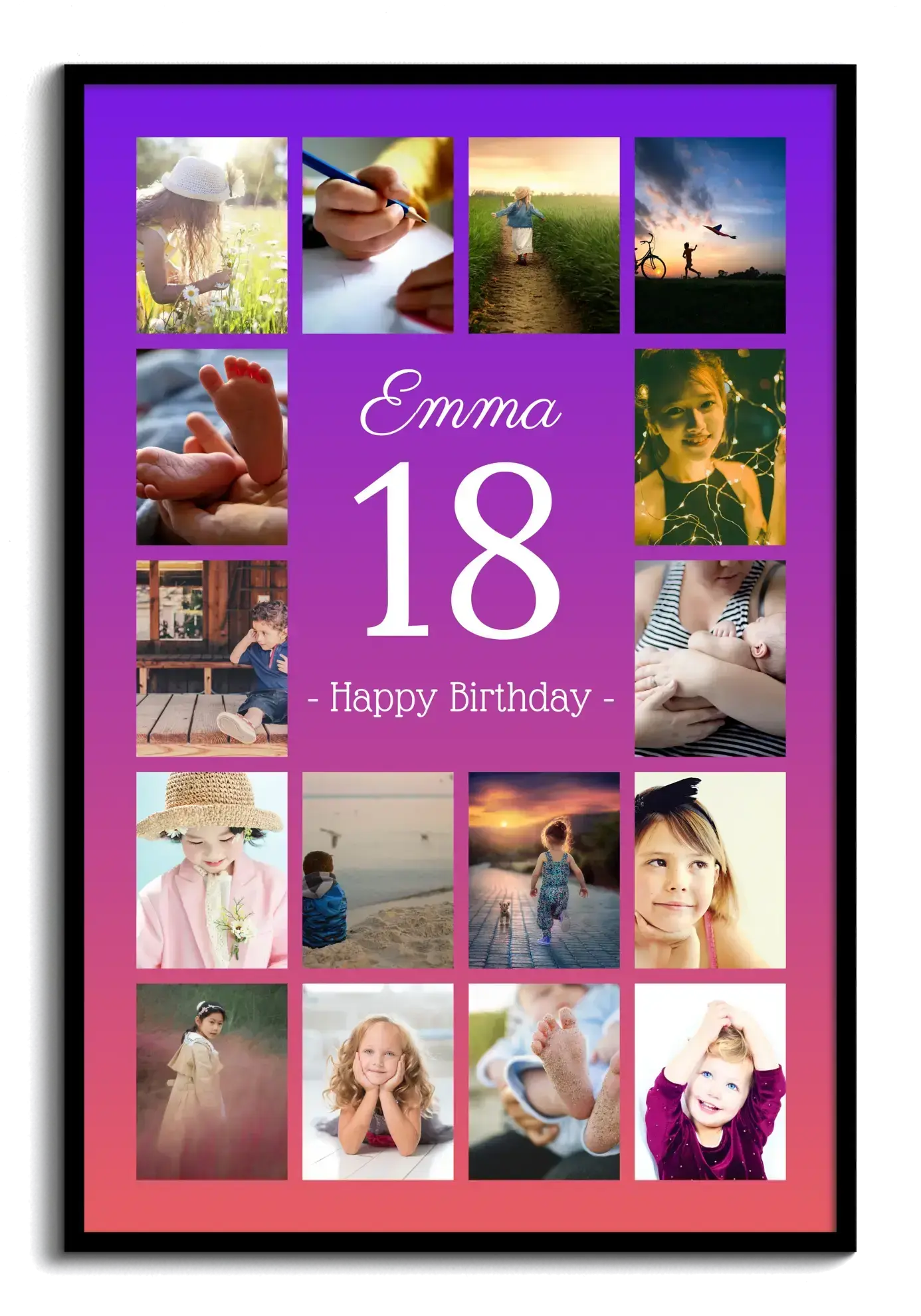 Number 18 photo collage—name, 20–80 photos—ideal gift for 18th birthday, graduation, coming-of-age