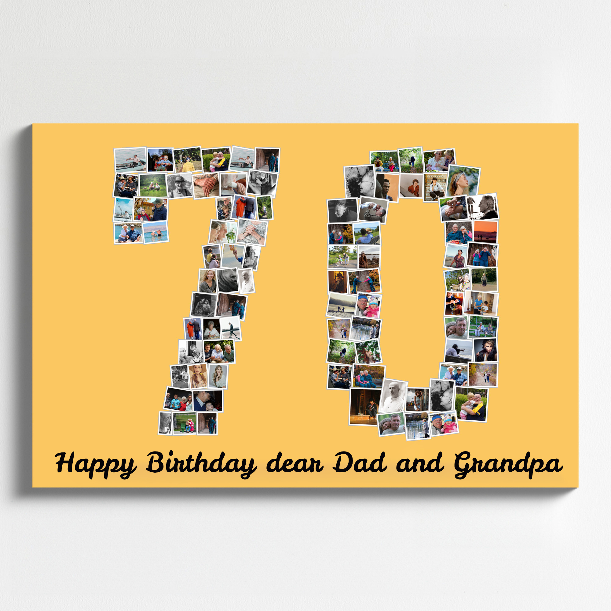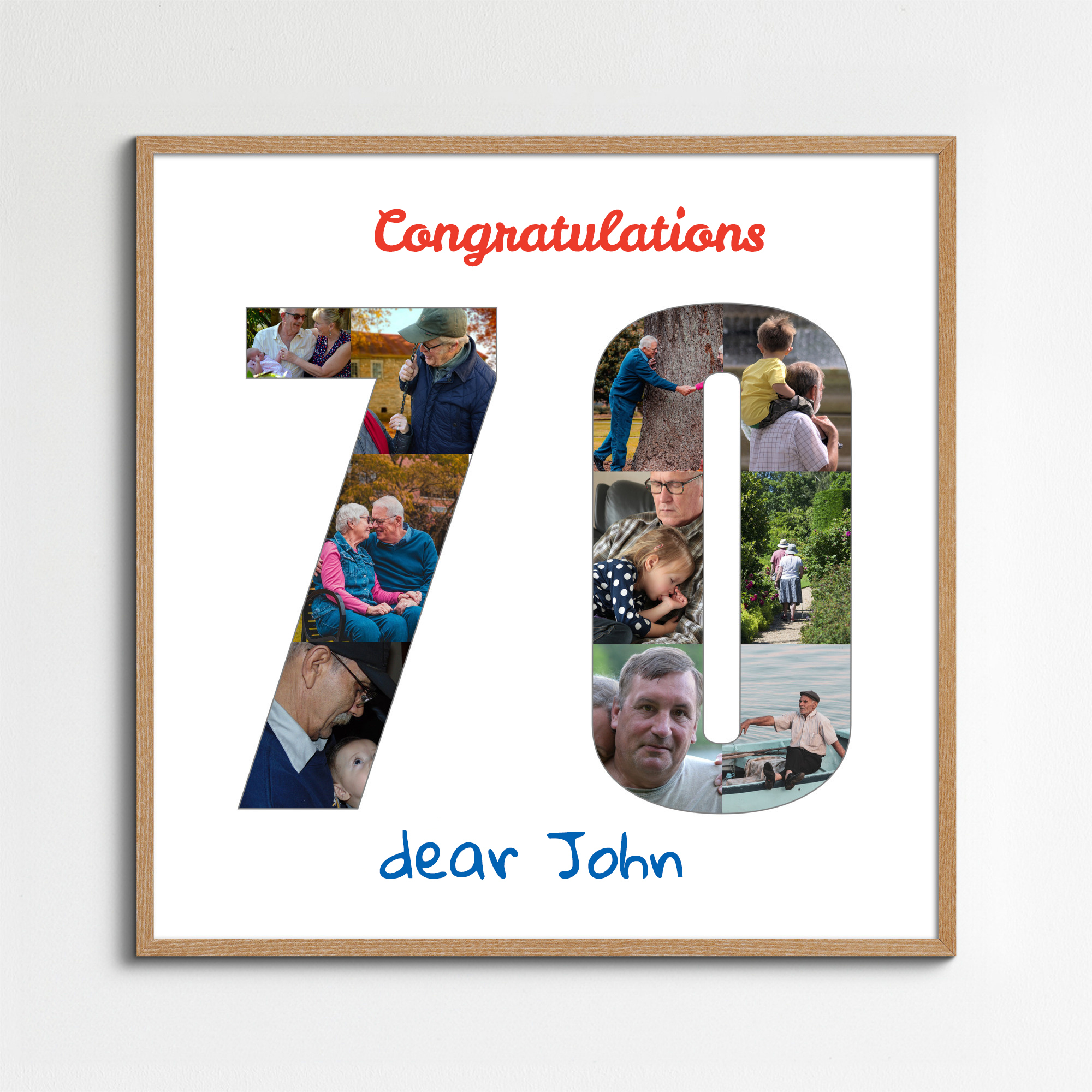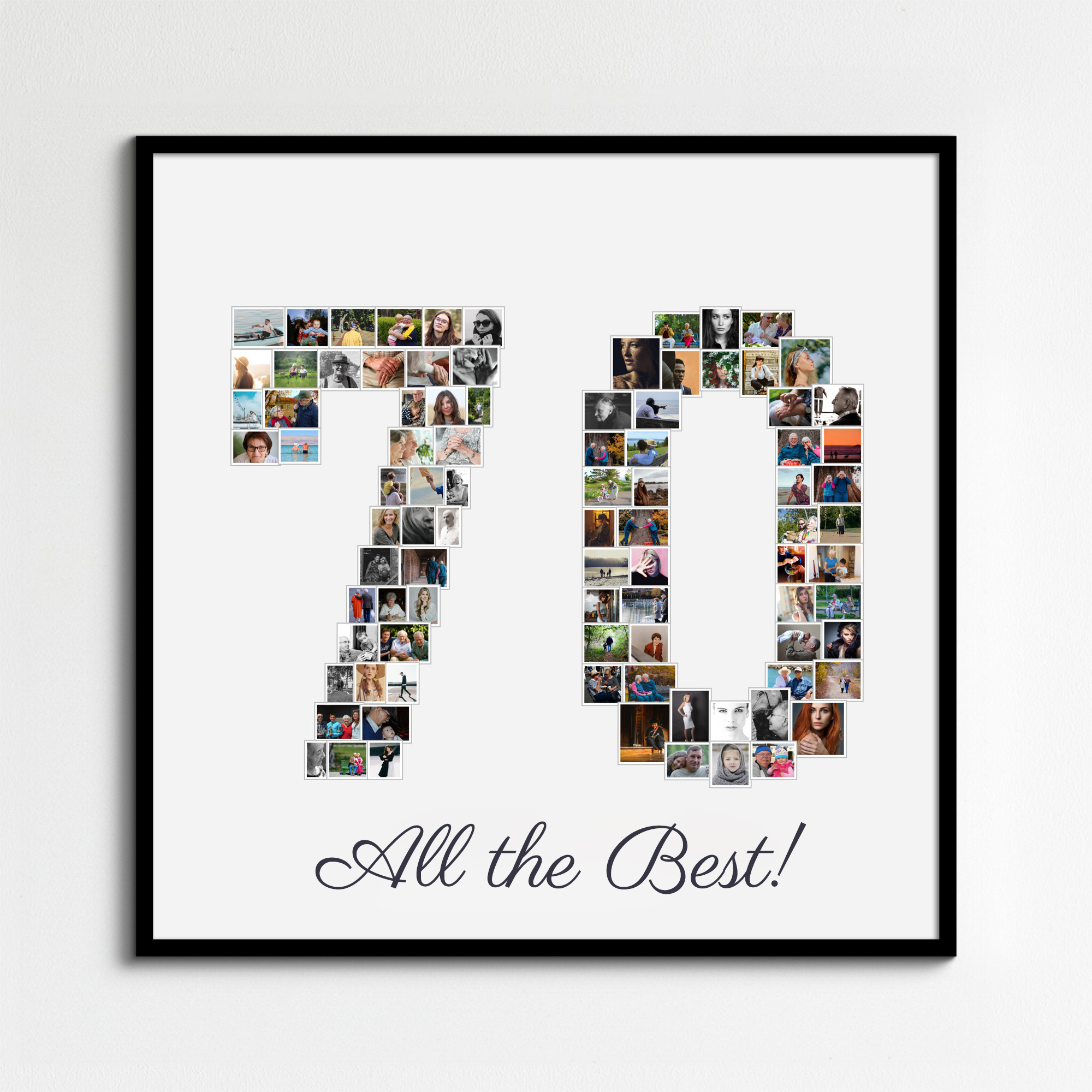 Celebrate 70 with a photo collage: 1-100 pictures for a memorable milestone gift.