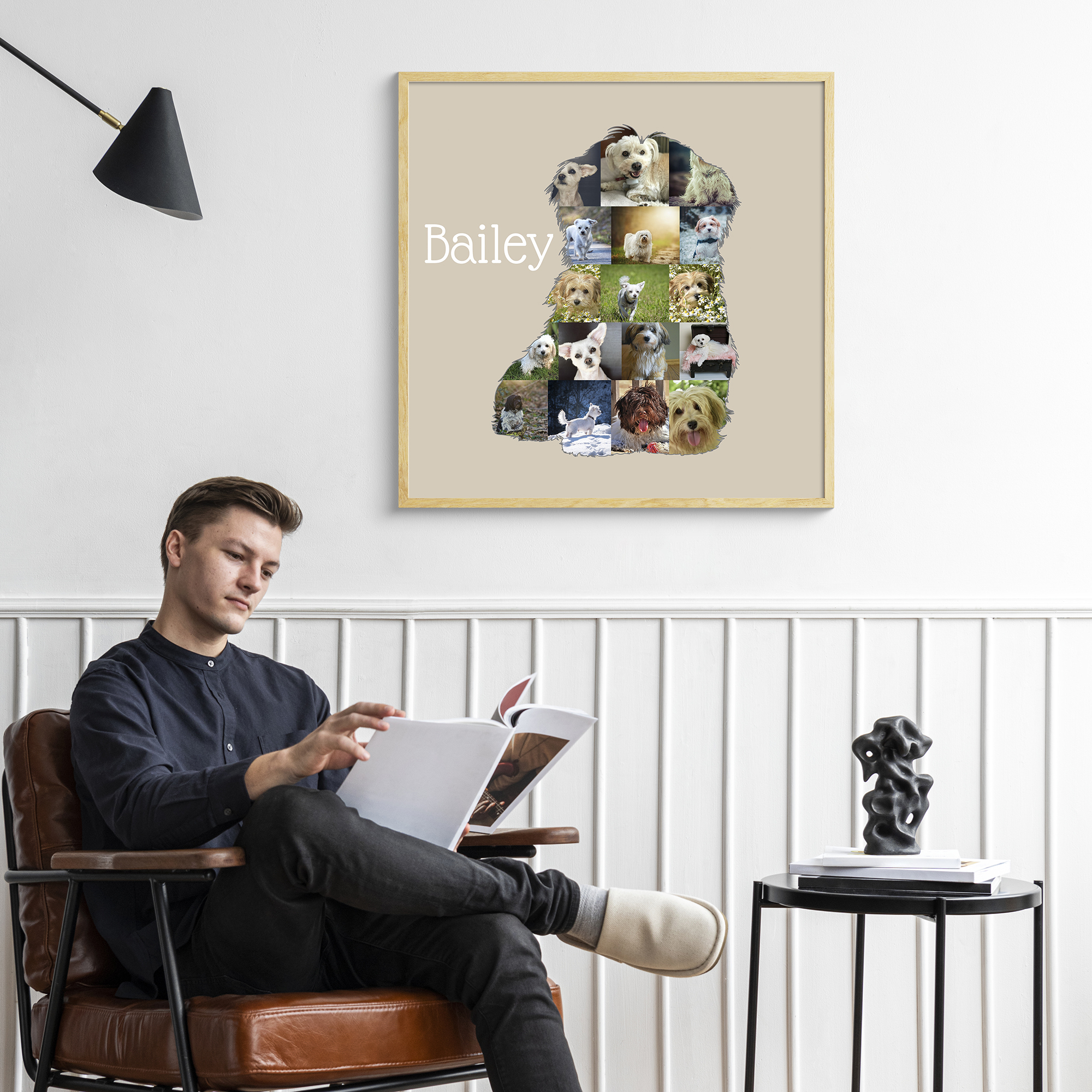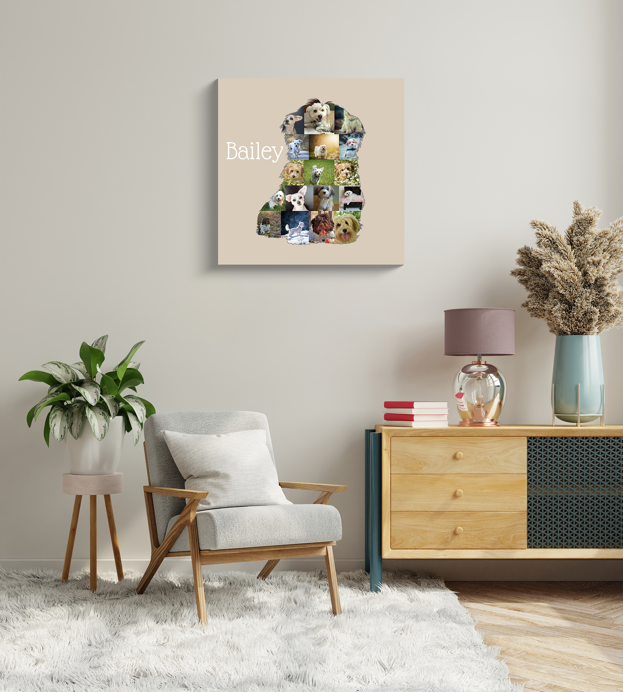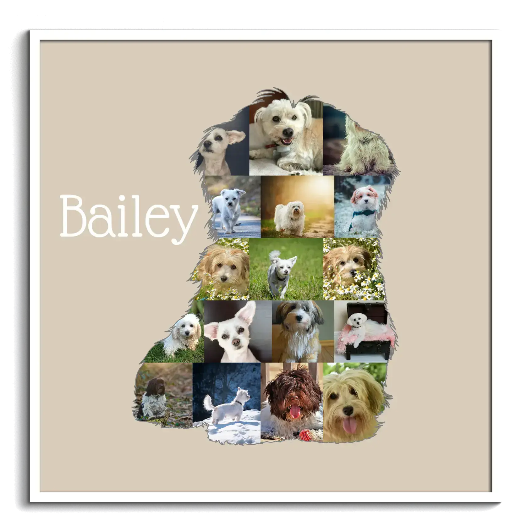This personalized photo collage makes for a meaningful gift or personal keepsake. Whether it's for a birthday gift, a heartfelt memory of a beloved pet, or simply a way to add a creative touch to your space, this collage is a versatile choice. It's perfect for dog lovers looking to celebrate their pet in a unique way.