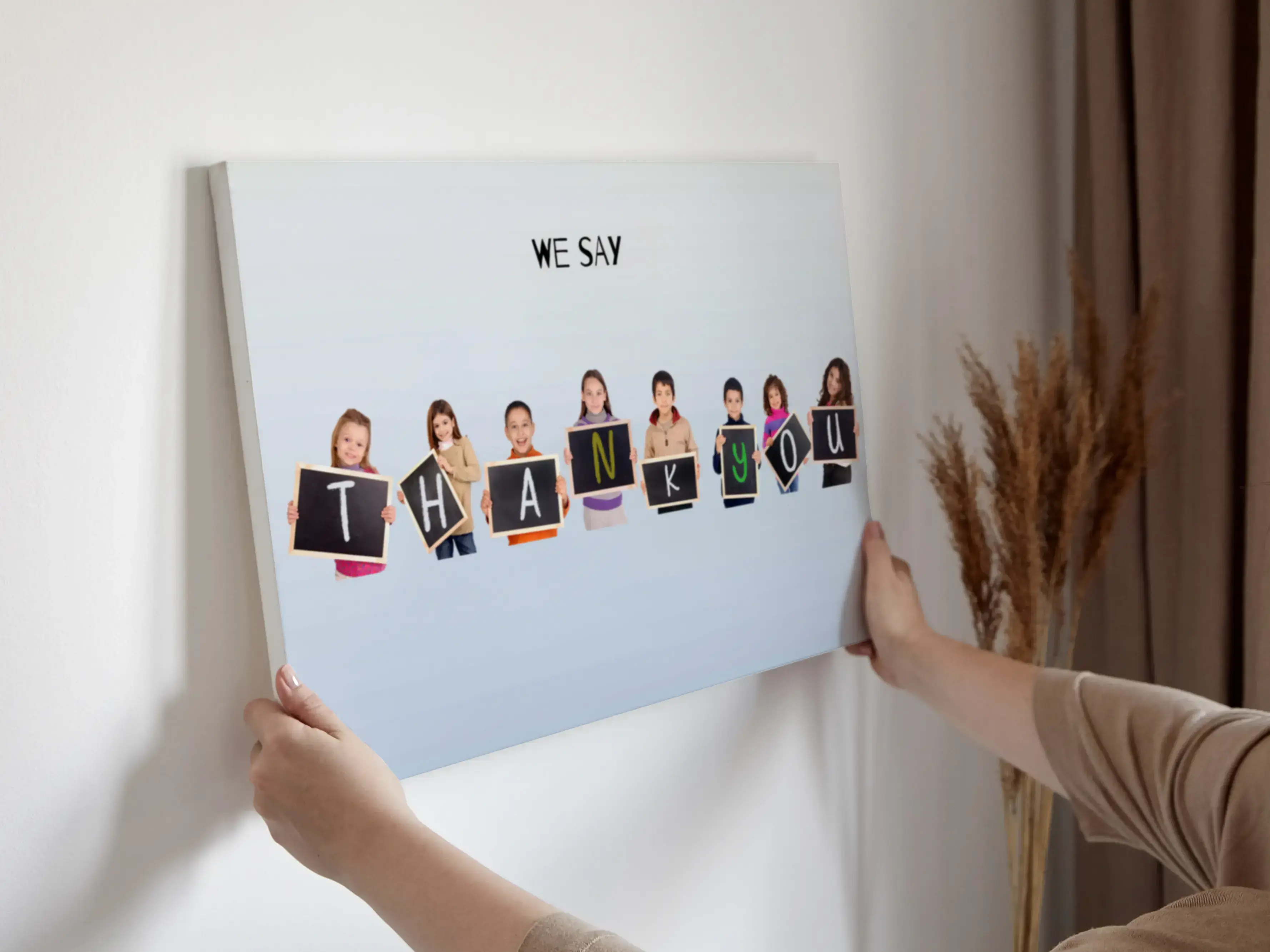 Create something truly special and say "Thank You" in a unique way with our customizable photo collage. Imagine a group of schoolchildren holding up letter boards to spell out "THANKS," accompanied by the heartfelt phrase "We say Thank You." It's the perfect gift for teachers, a charming display in classrooms, or a memorable keepsake for parents. Every aspect, from photos, colors, font, to the saying and layout, is yours to personalize.