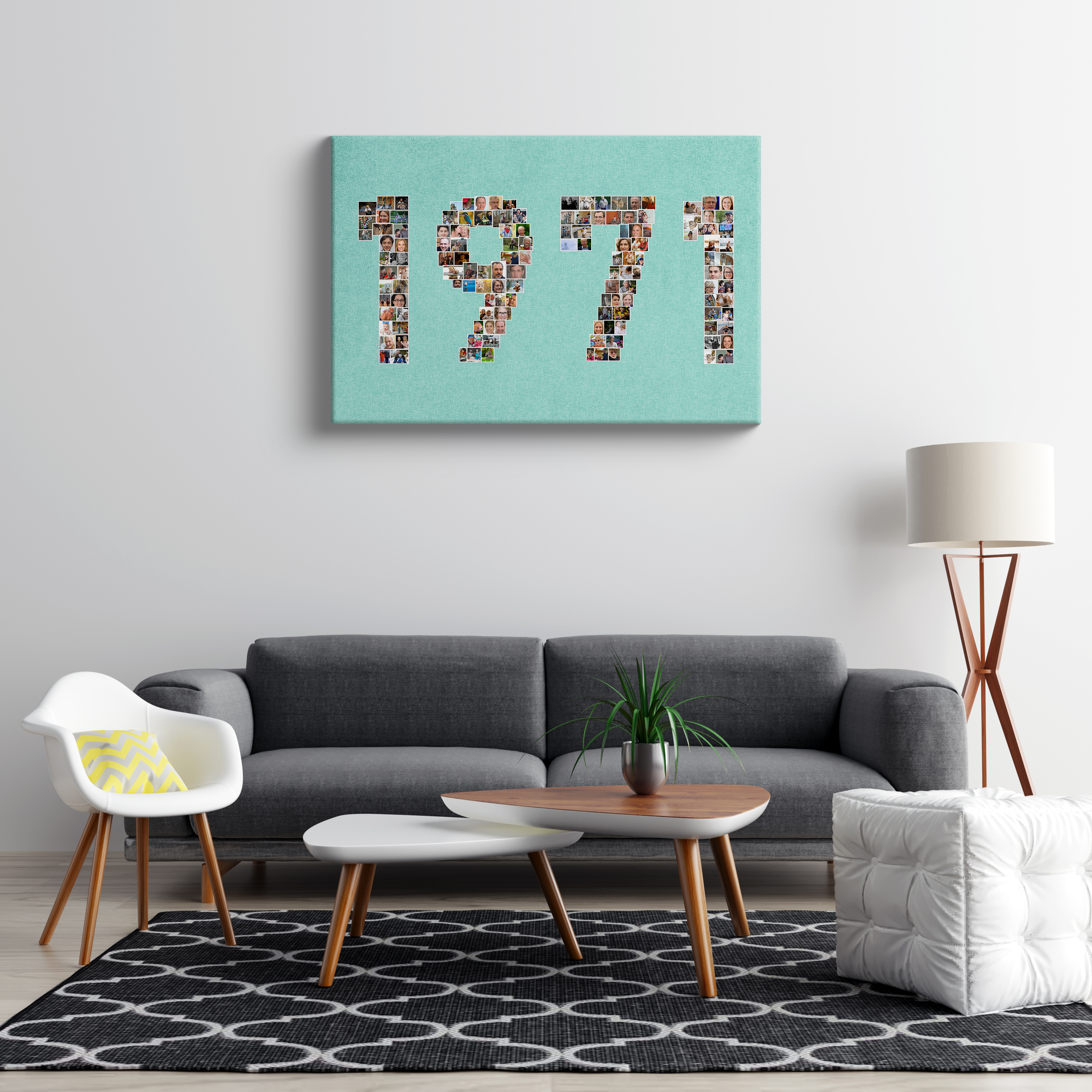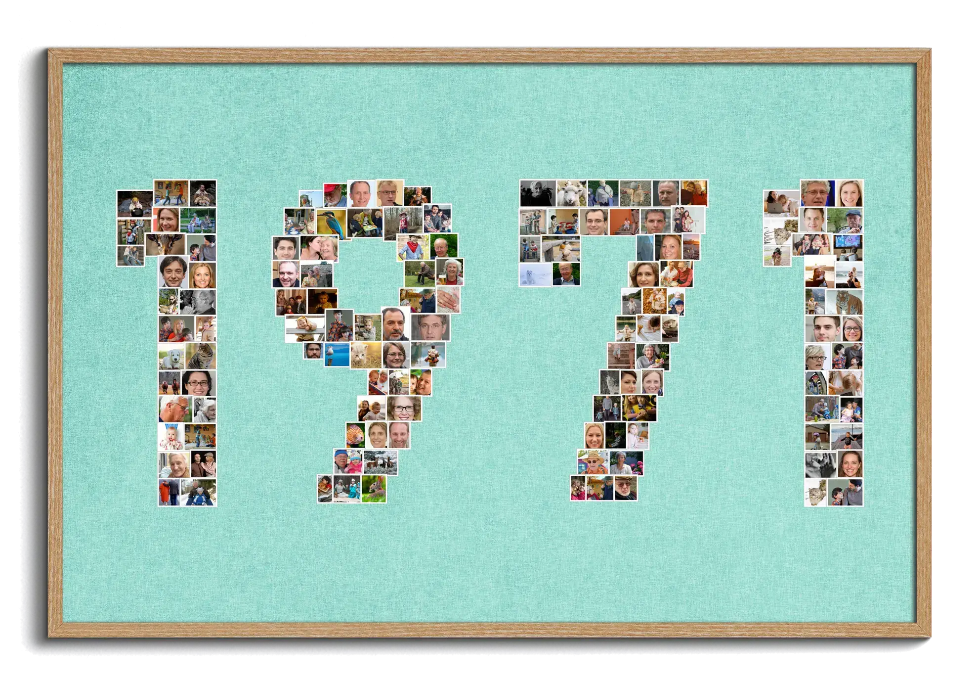 Create your own memorable masterpiece with our customizable photo collage, designed as the number "1971". This special birthday gift features countless tiny photos that collectively form the year of birth, making it a creative and personal keepsake or a standout decoration for a birthday celebration. Perfect for families, friends, or couples seeking a unique gift, you can adjust photos, numbers, background color, and design to fit your vision.