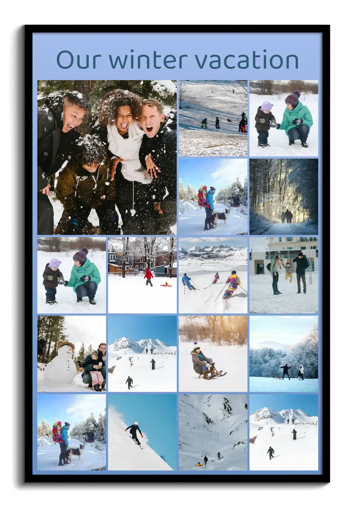 Create your own personalized winter memories collage. Imagine a stunning visual representation of your winter adventures, from landscapes to family ski trips. Add a heartfelt touch with custom text like "Our Winter Vacation." It's more than just pictures; it's a keepsake of cherished moments.