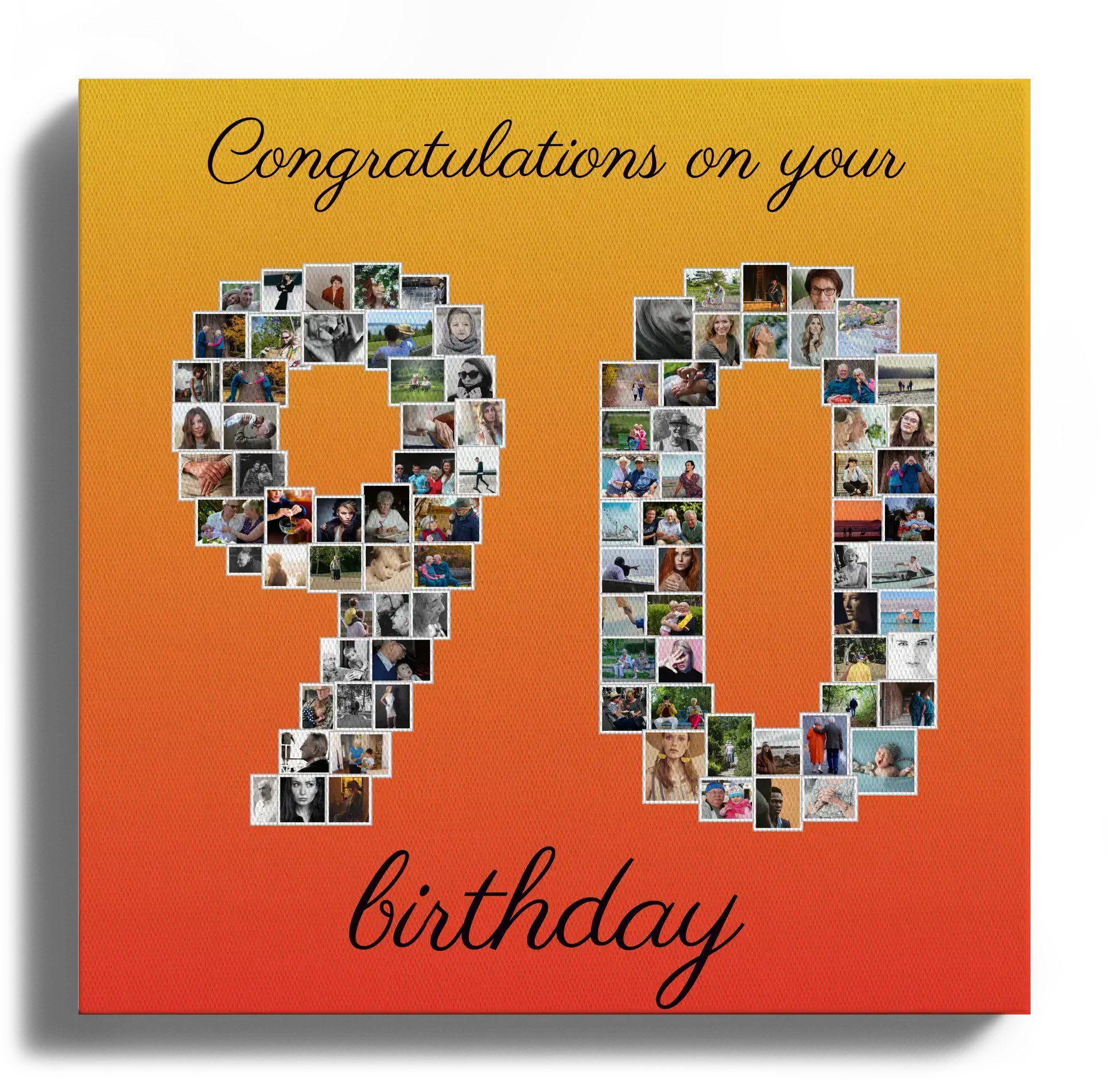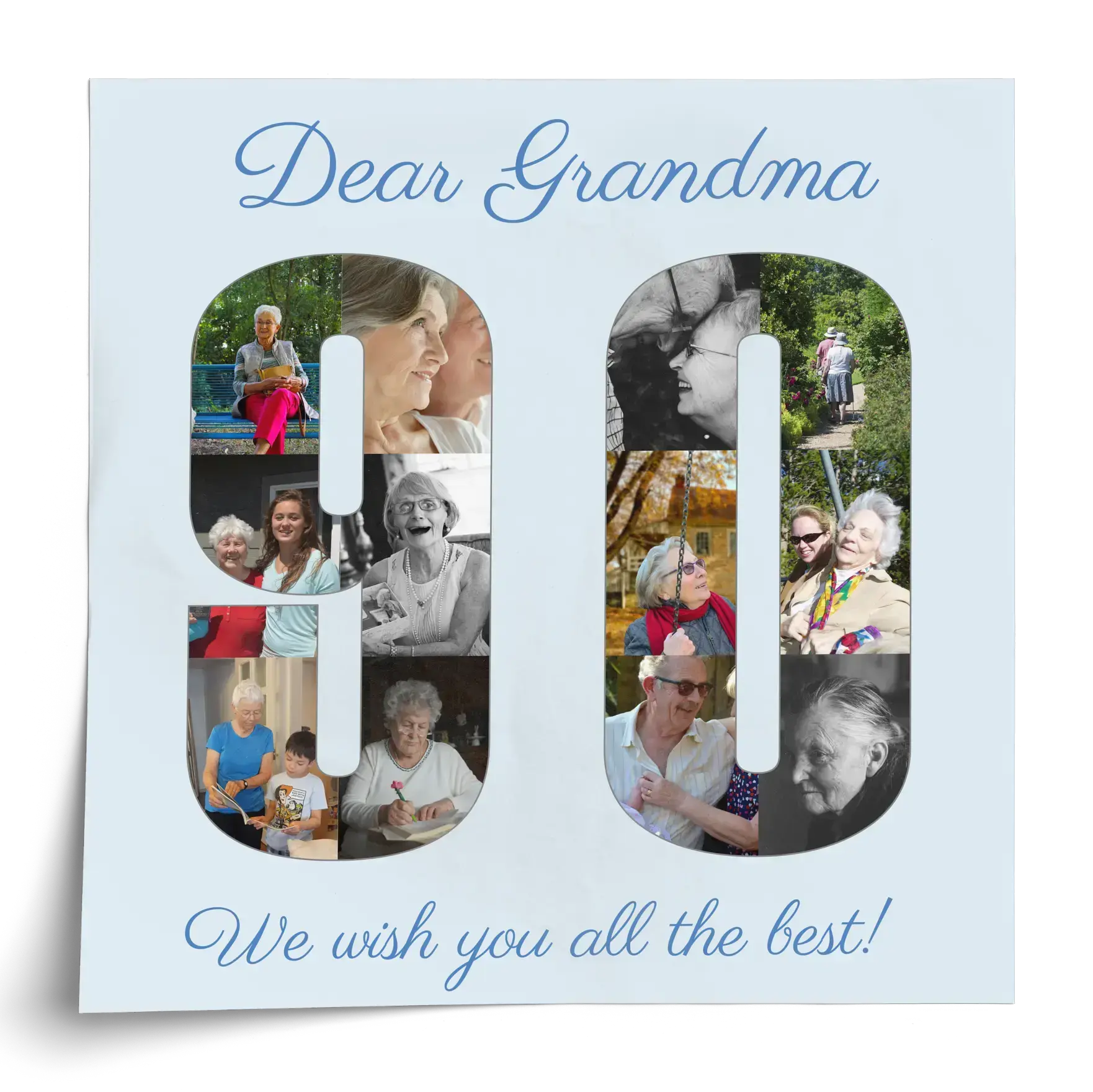 Celebrate 90 years with custom photo collage; perfect for birthdays and life milestones.