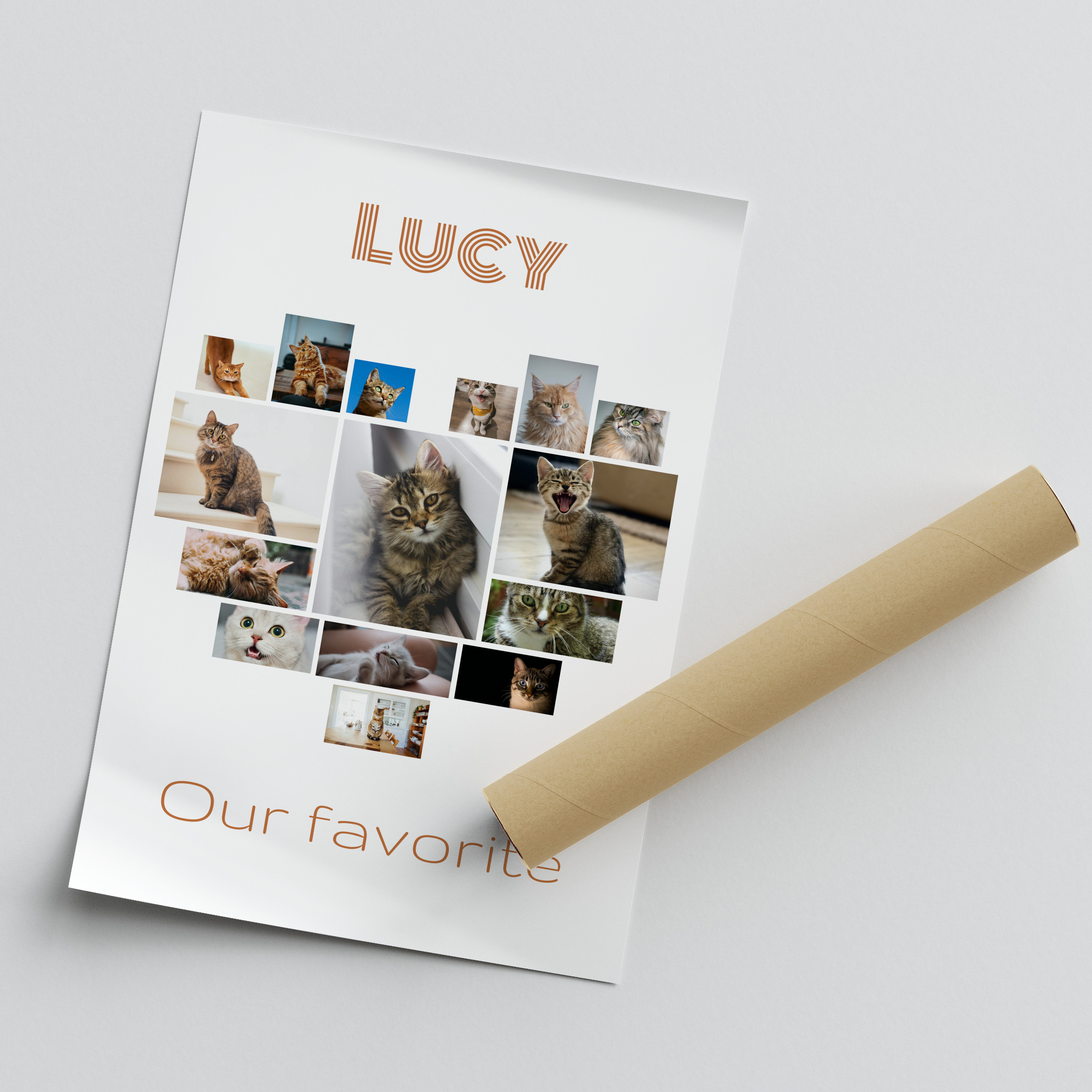 Cat photos in a heart collage, personalized with text like Our Favorite or the cat's name.