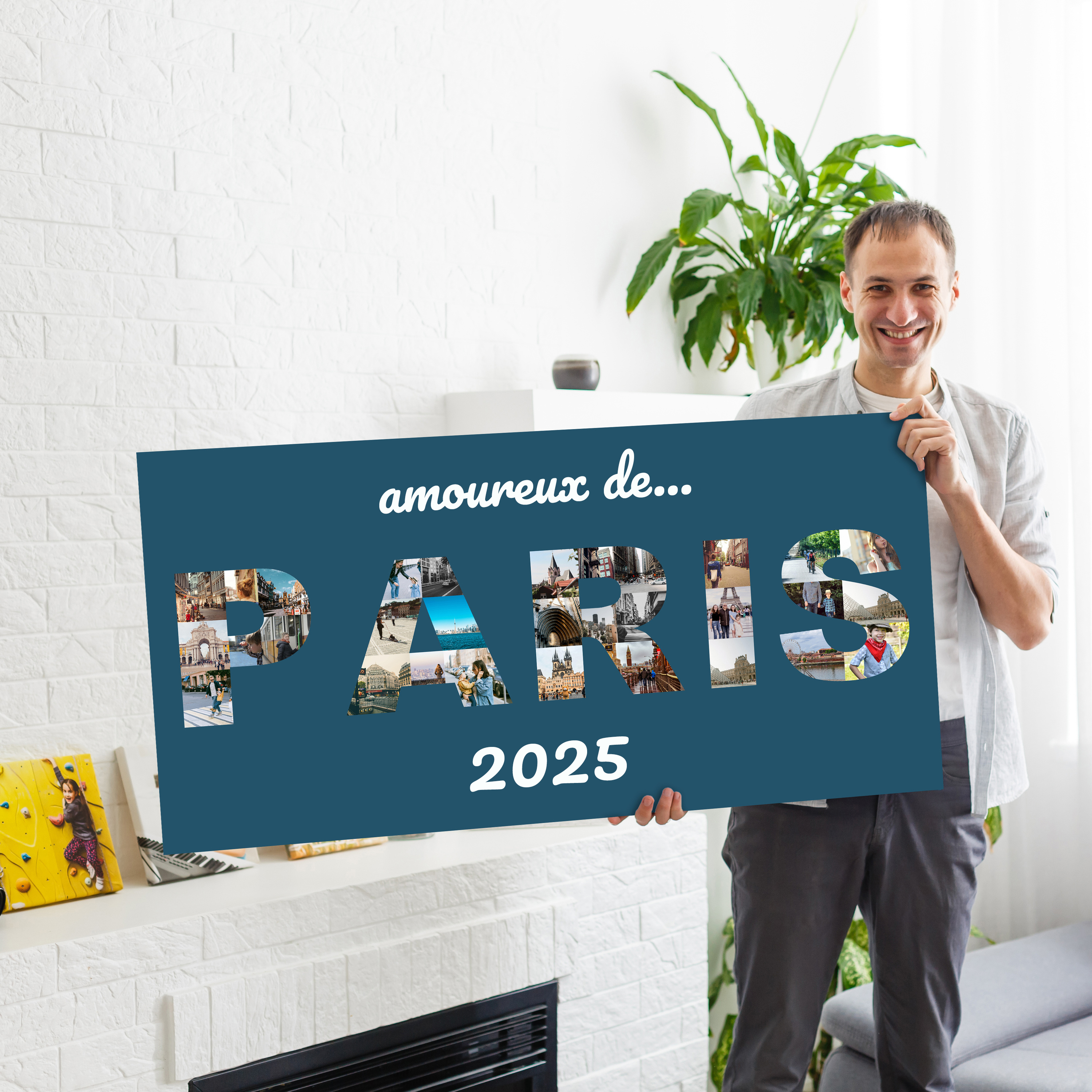 Créez votre collage lettres PARIS sur toile premium avec vos photos de vacances