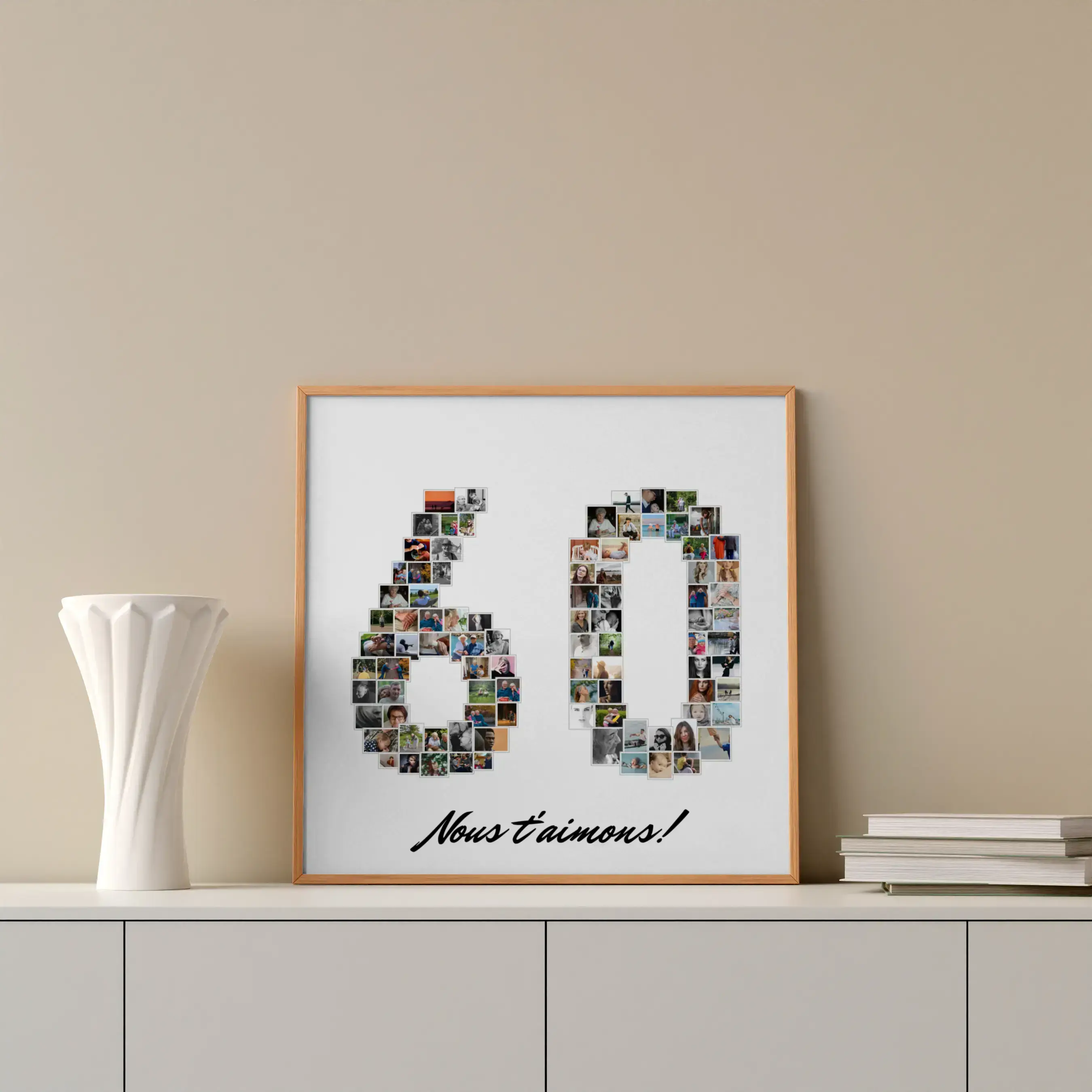 Collage numéro 60 personnalisée - Cadeau d'anniversaire ou retraite