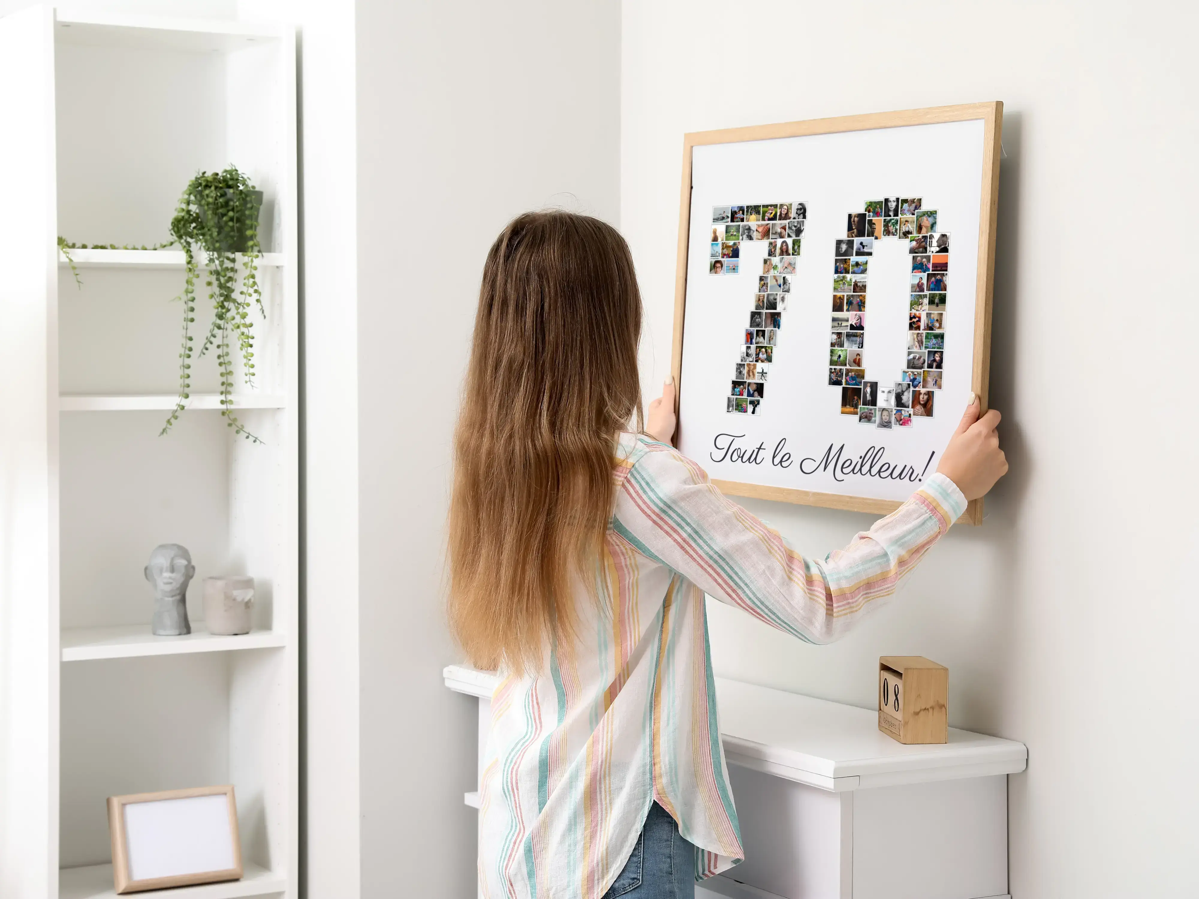 Célébrez un 70ème anniversaire unique avec une mosaïque personnalisée de souvenirs inoubliables.