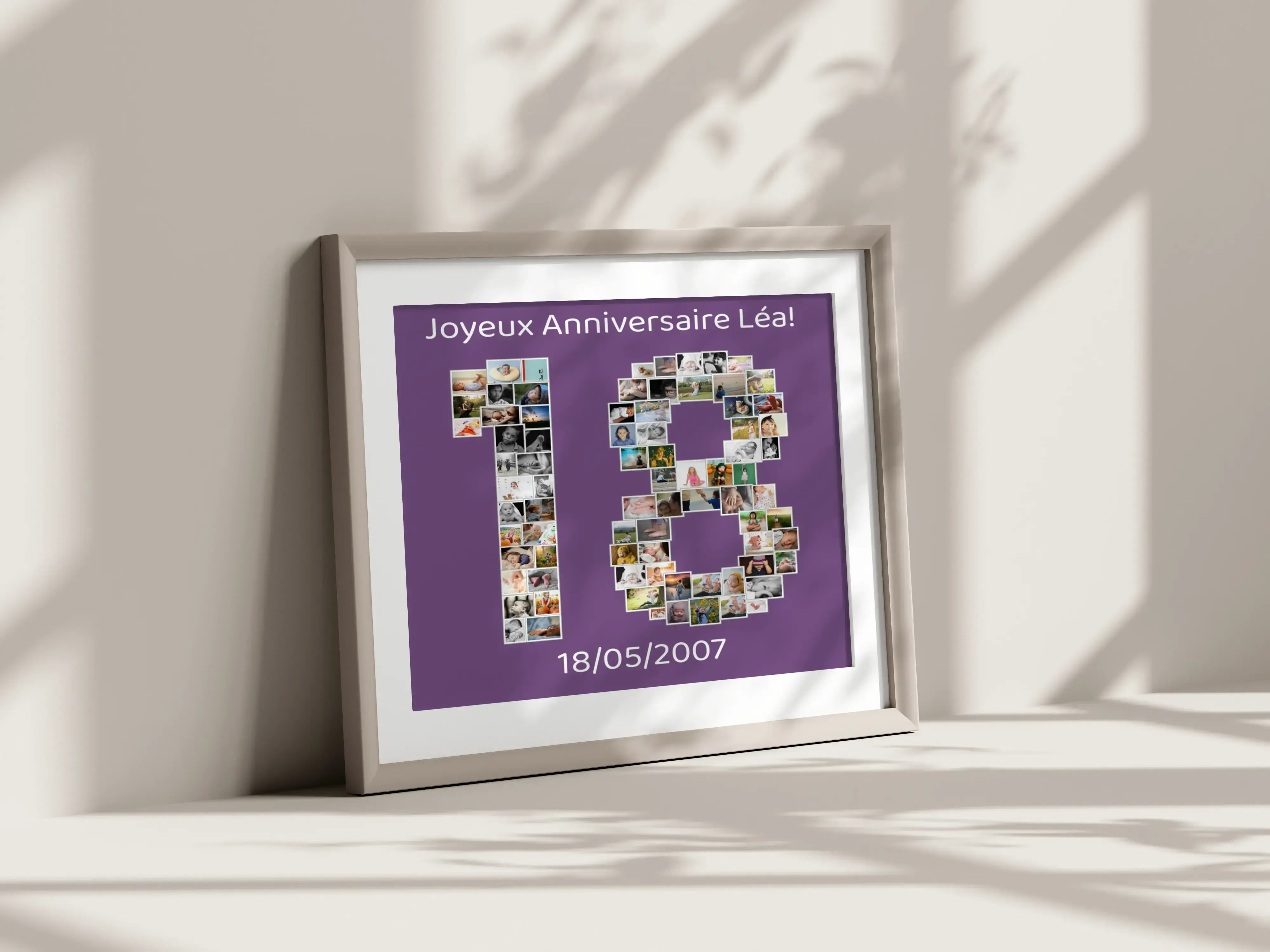 Créez une œuvre d'art unique avec votre propre collection de souvenirs grâce à notre produit de collage photo personnalisable. Imaginez un collage où le chiffre 18 prend vie à partir de vos photos mémorables, conçu spécialement pour célébrer des occasions spéciales comme un anniversaire ou le passage à l'âge adulte. Utilisez entre 1 et 100 images pour rendre cet événement encore plus mémorable.
