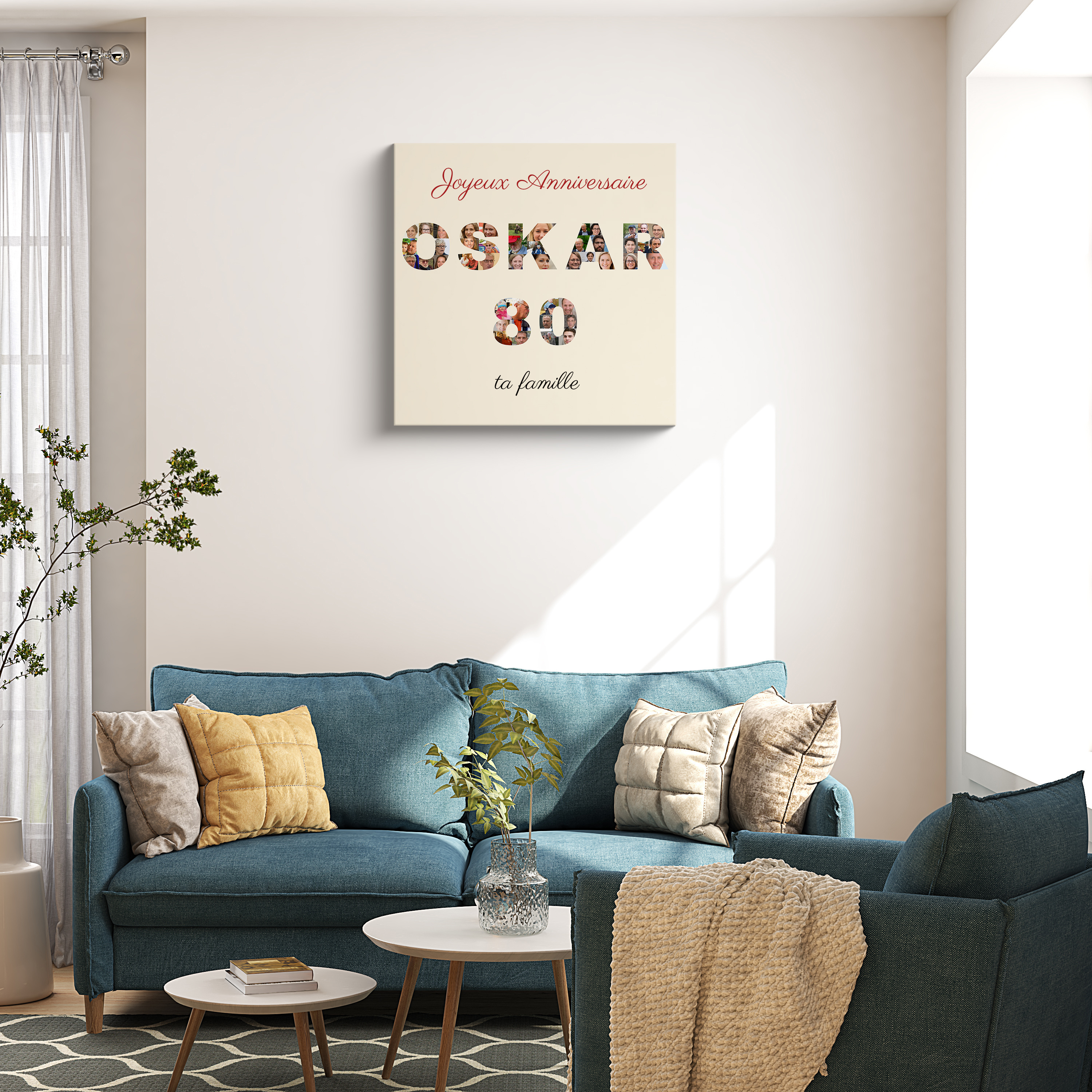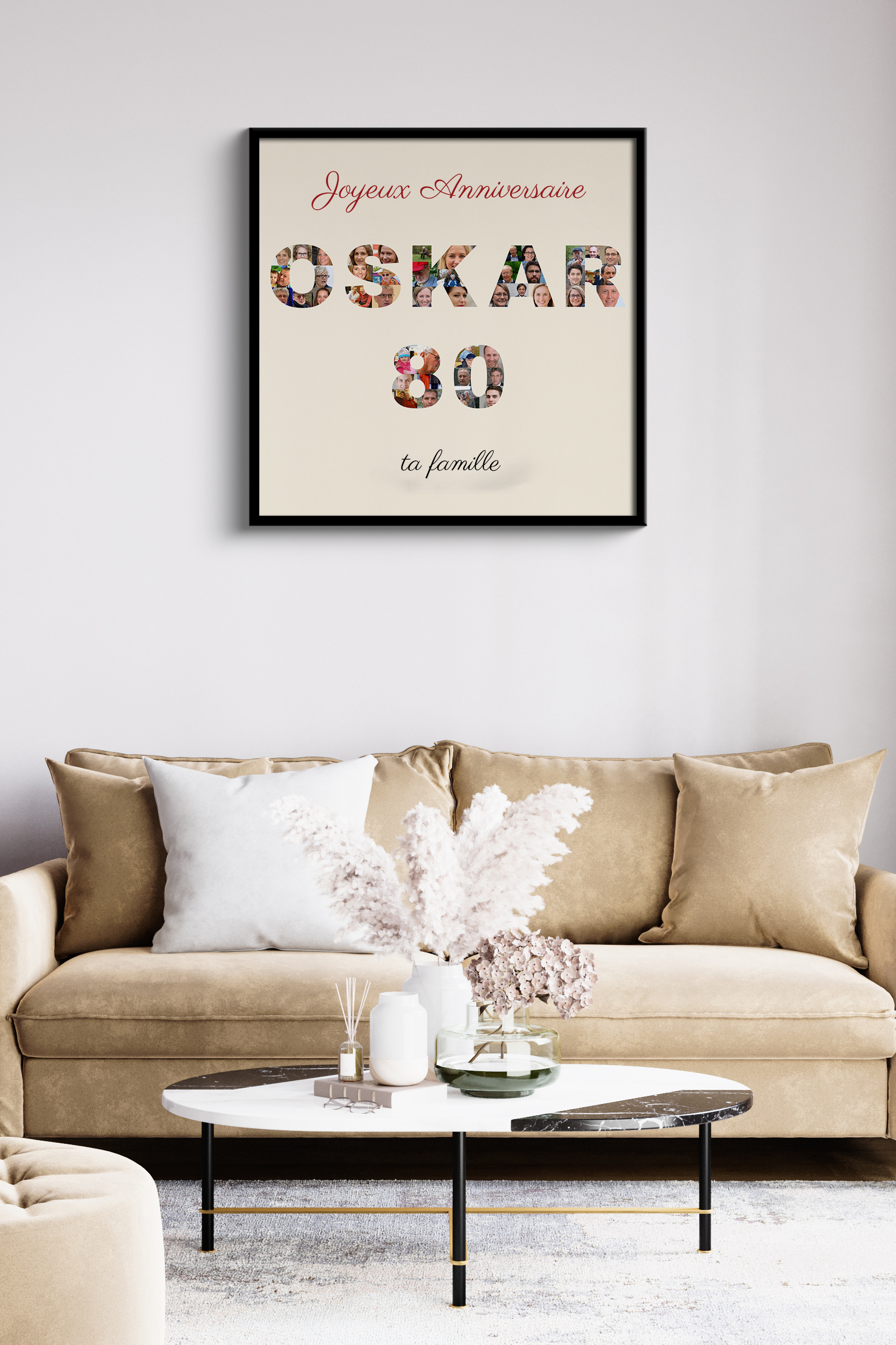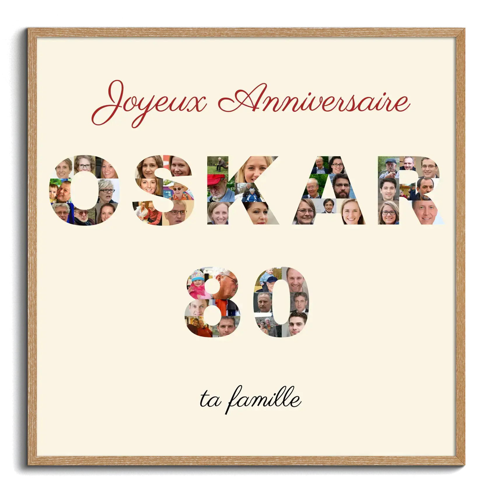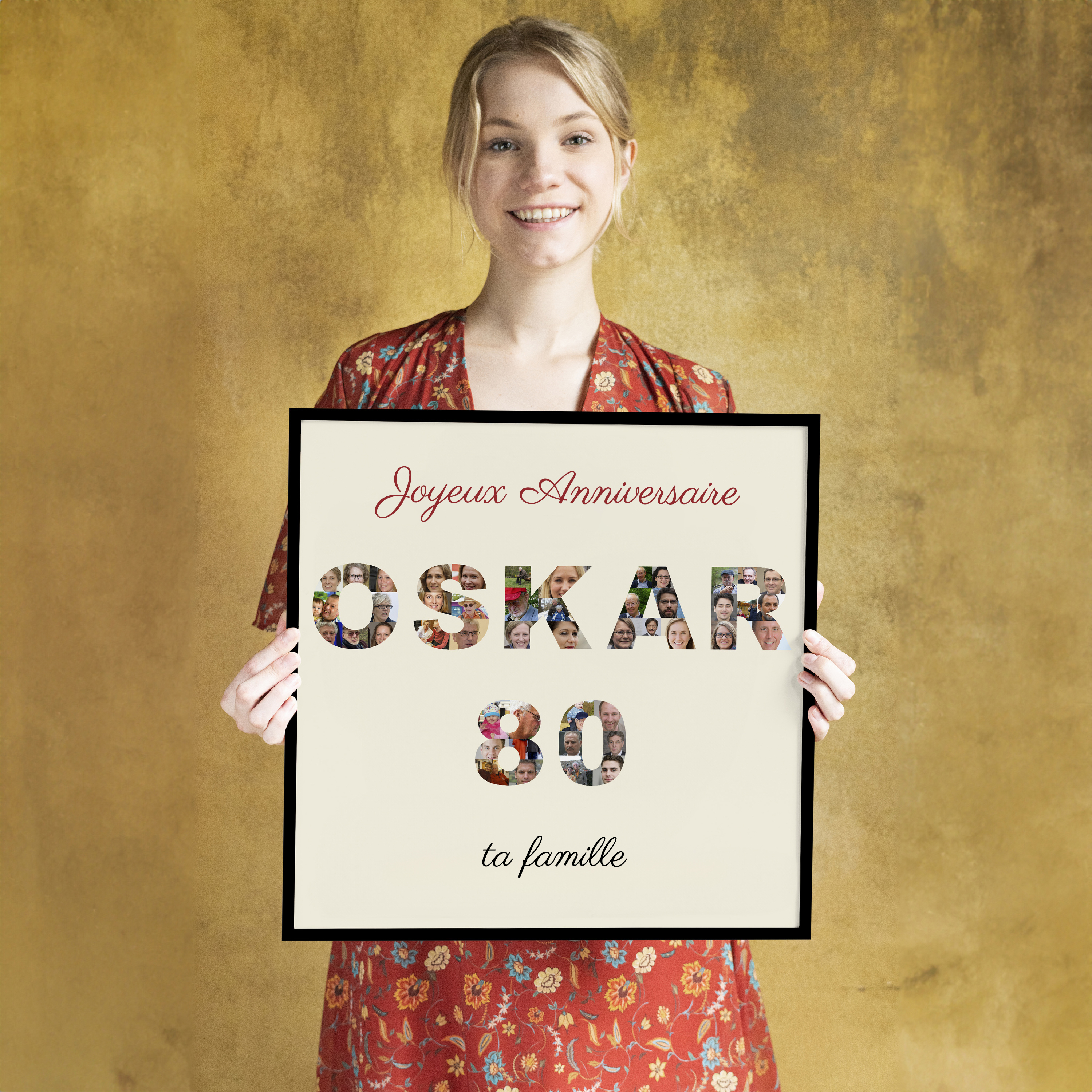 Créez un cadeau unique avec une collab de photos formant un nom et âge personnalisés.