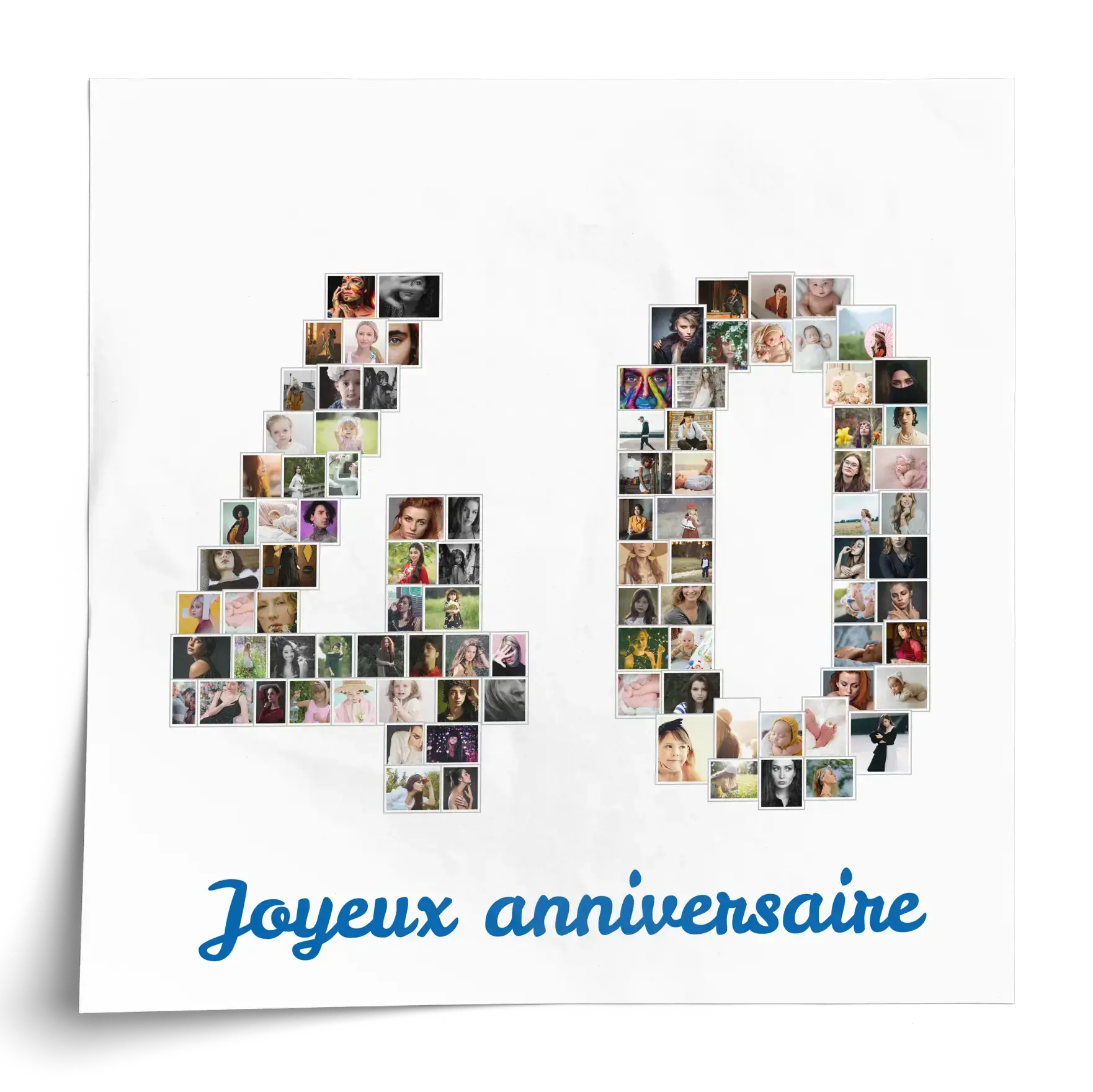 Collage Photo "40" pour Anniversaire ou Événement - Personnalisez et Offrez !
