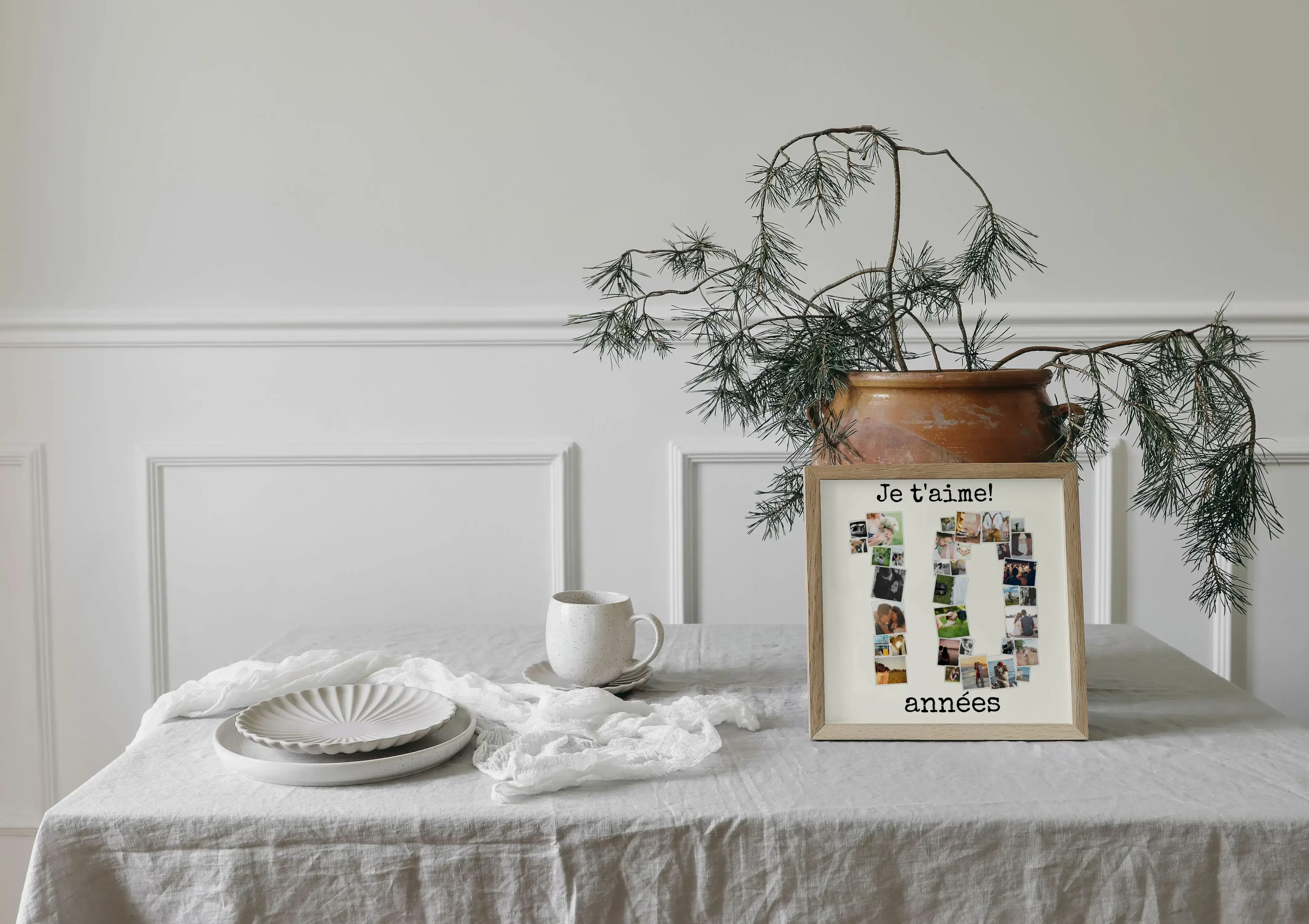 Créez votre propre chef-d'œuvre photographique avec notre produit de collage photo personnalisable. Imaginez une superbe affiche en forme de chiffre 10, composée de vos précieux souvenirs. Pour un anniversaire de mariage ou un jubilé d'entreprise, ce collage unique peut intégrer entre 1 et 100 photos selon la variante choisie. Transformez vos moments spéciaux en une œuvre d'art inoubliable, idéale pour un cadeau marquant.