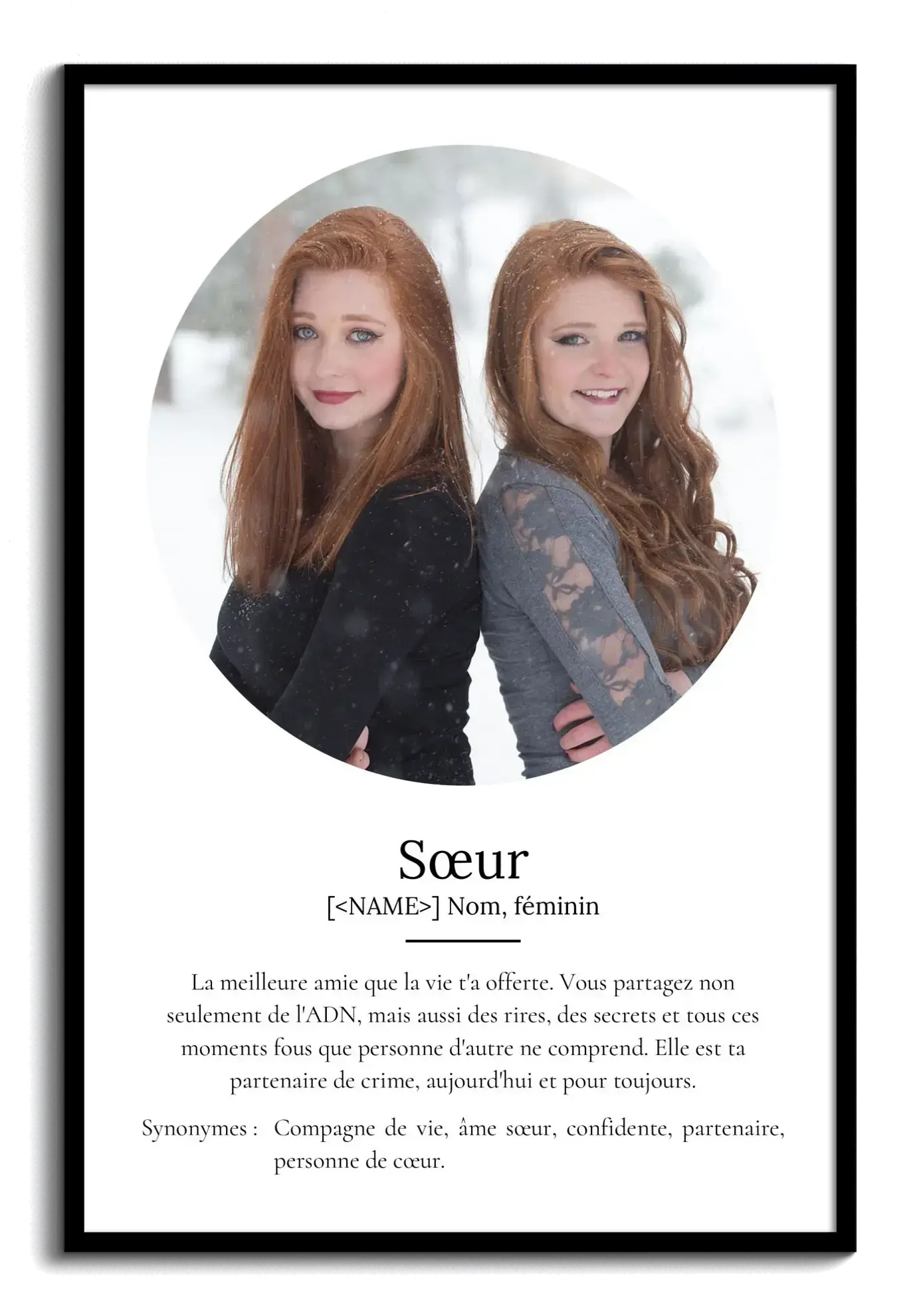 Créez un souvenir unique avec un poster personnalisé "Sœur", un hommage à votre complice éternelle.