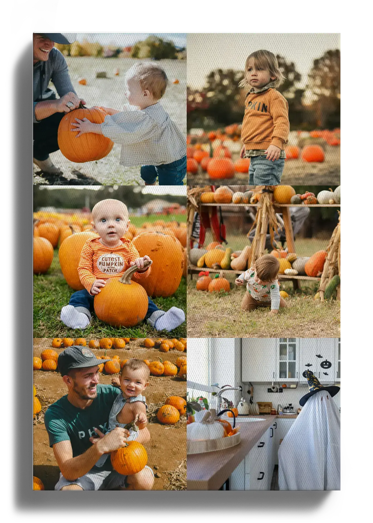 Créez une pièce unique de souvenirs capturant l'esprit d'Halloween avec notre produit personnalisable. Imaginez une collage de vos moments préférés, où les costumes effrayants se mêlent à des citrouilles souriantes, accompagnés de petits textes ludiques comme "Süßes oder Saures". Faites de vos souvenirs d'Halloween une œuvre d'art que vous garderez précieusement.