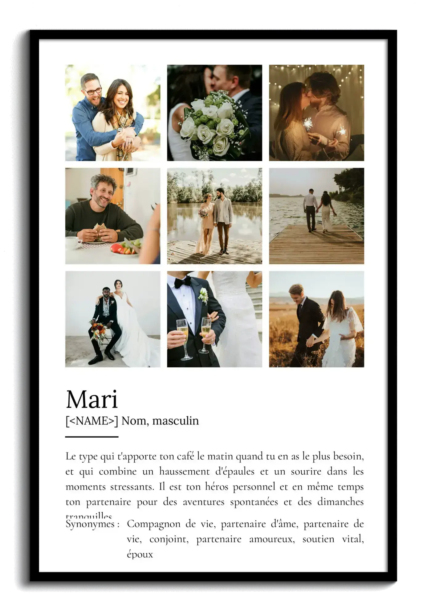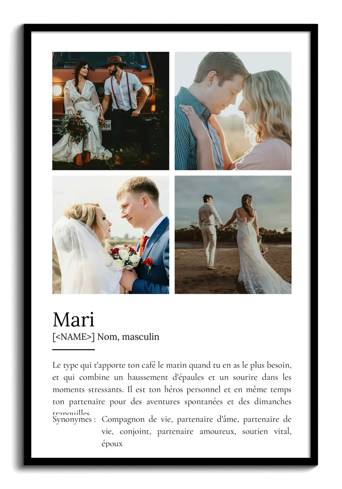 Poster Définition Personnalisé Ehemann - Cadeau Unique avec Photos et Texte Modifiables