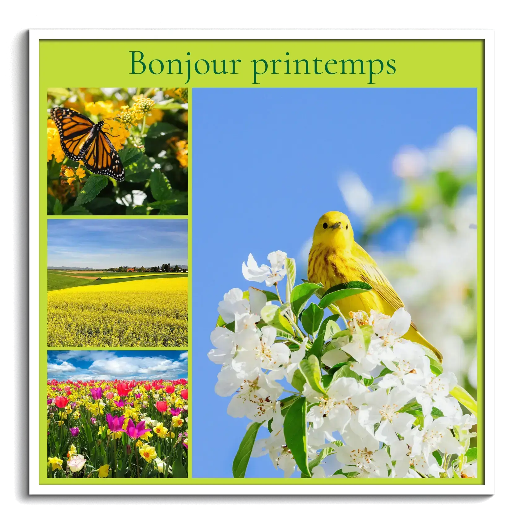 Tableaux muraux de printemps: fleurs, prairies fleuries, collages, textes personnalisés