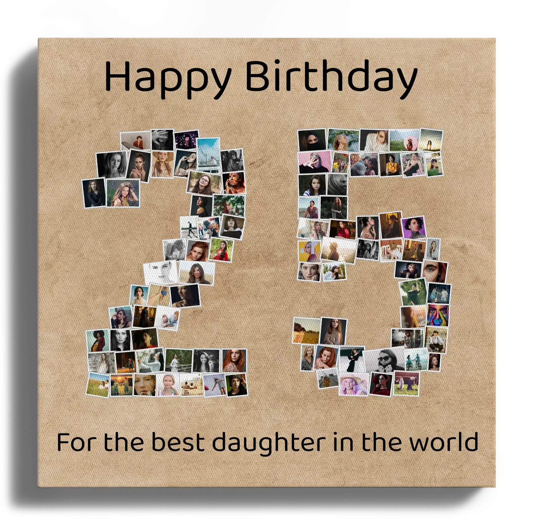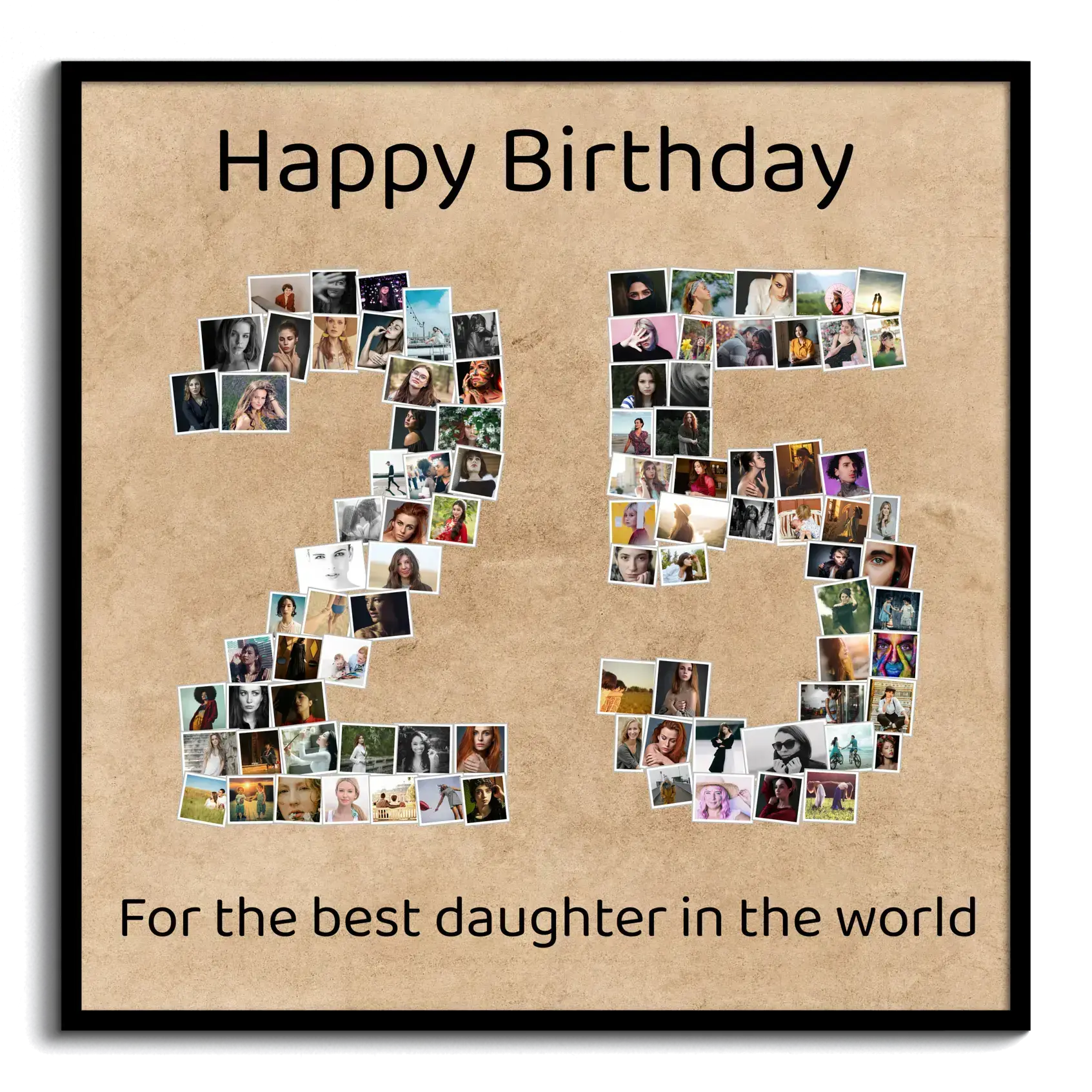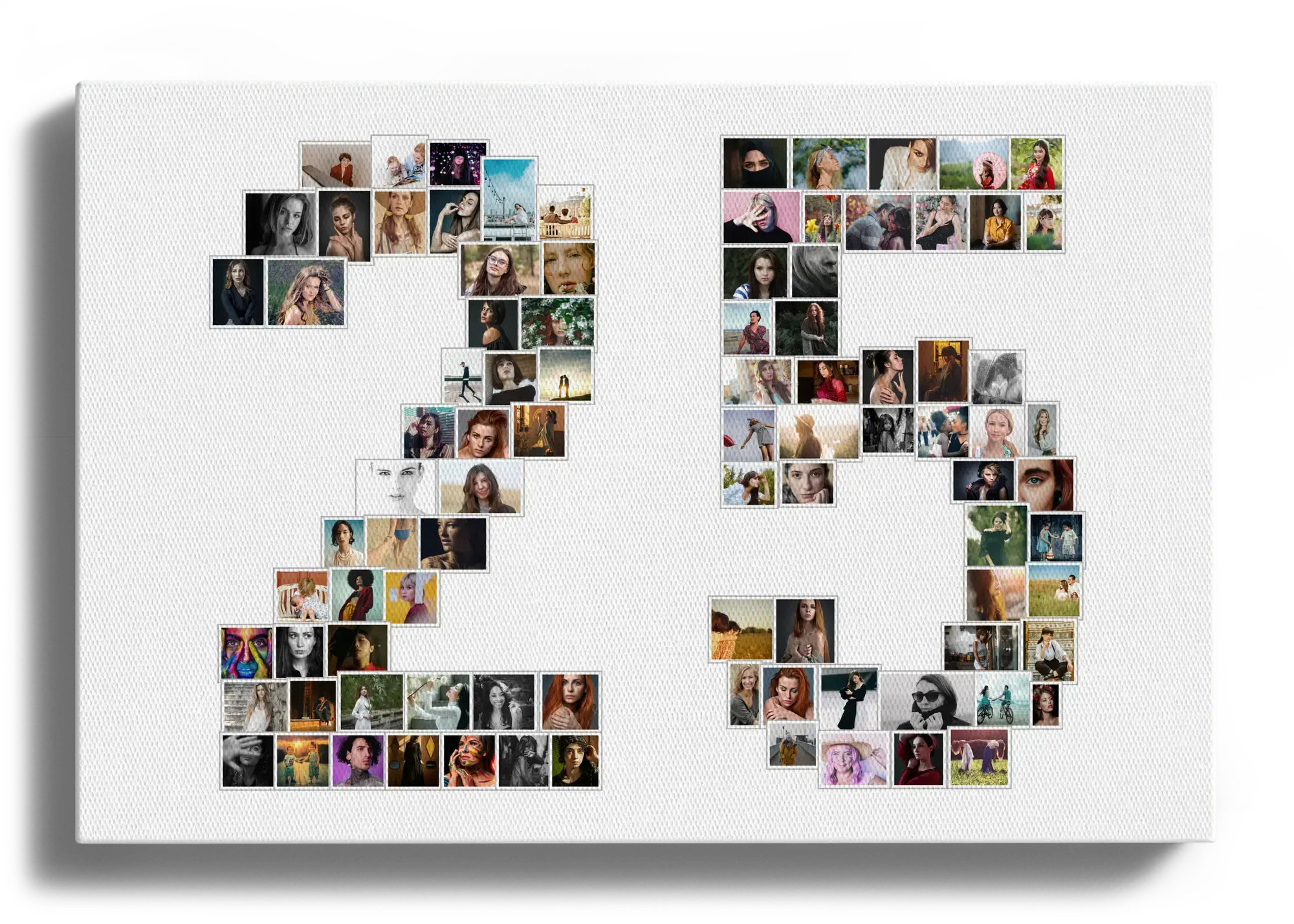 Create your own unique photo collage and celebrate special moments with a personal touch. Our example product showcases the number '25' artfully composed of numerous individual photos. Depending on your chosen template and numbers, you can use from 1 to 100 images, making it a perfect gift for occasions like a silver anniversary or a company milestone.