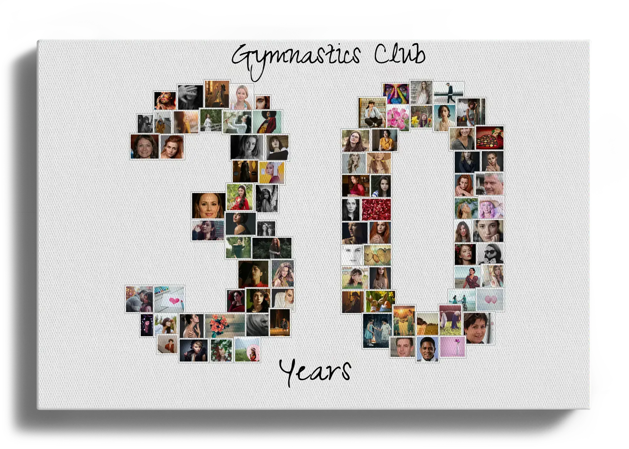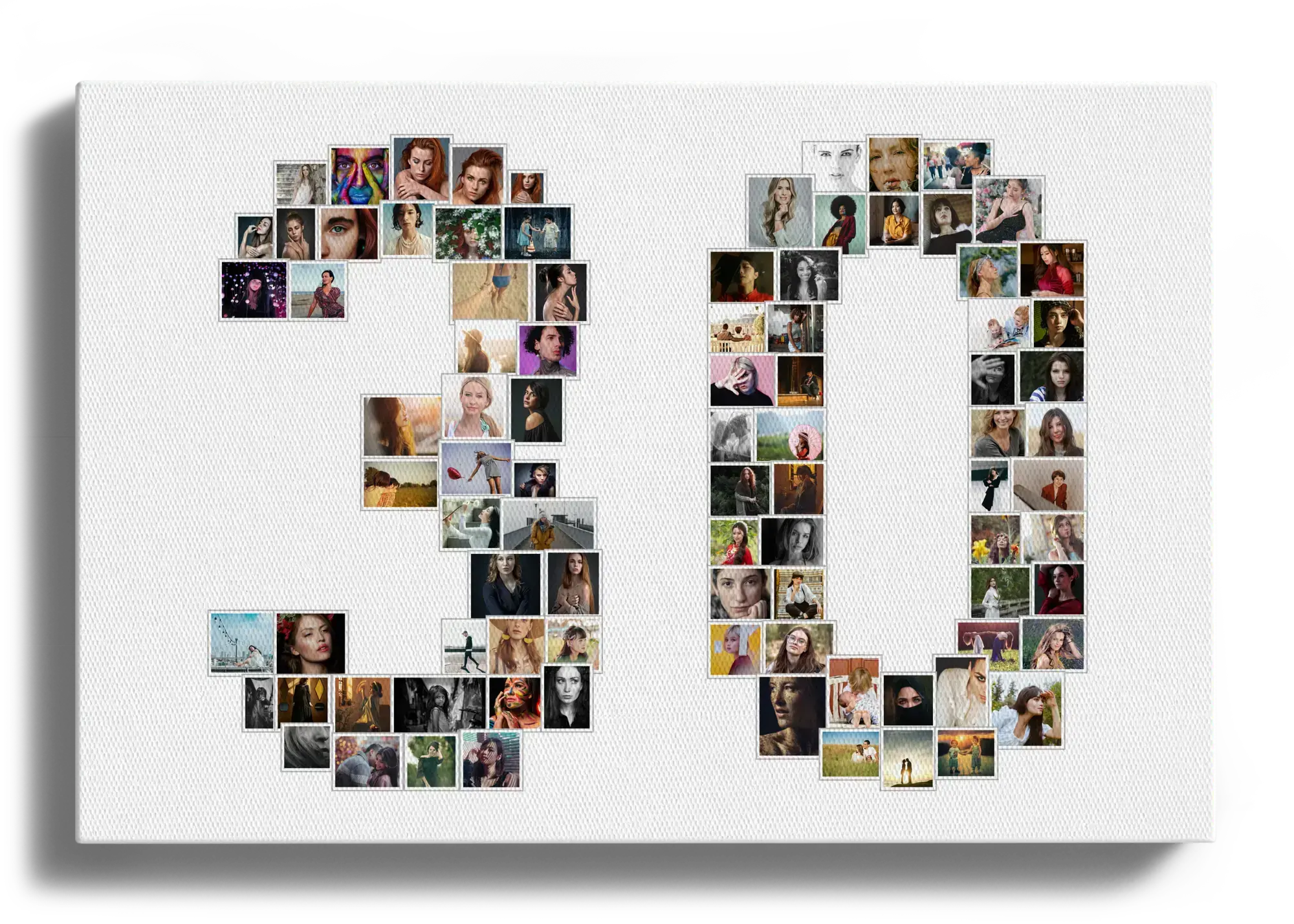 Create a personalized photo collage that's as unique as the memories it's made of. Whether you're celebrating a 30th birthday, an anniversary, or a corporate milestone, our photo collage allows you to arrange anywhere from 1 to 100 photos into the shape of the number 30. Capture and display special moments in a way that resonates with your story.