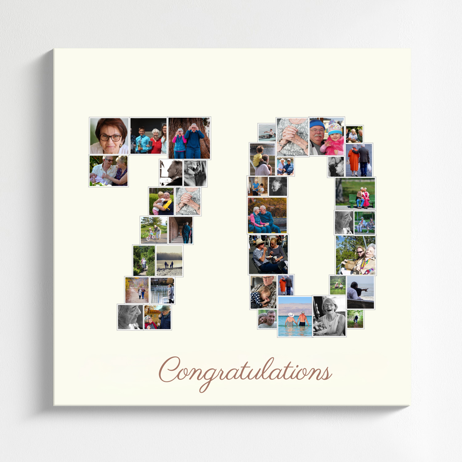Celebrate 70 with a photo collage: 1-100 pictures for a memorable milestone gift.