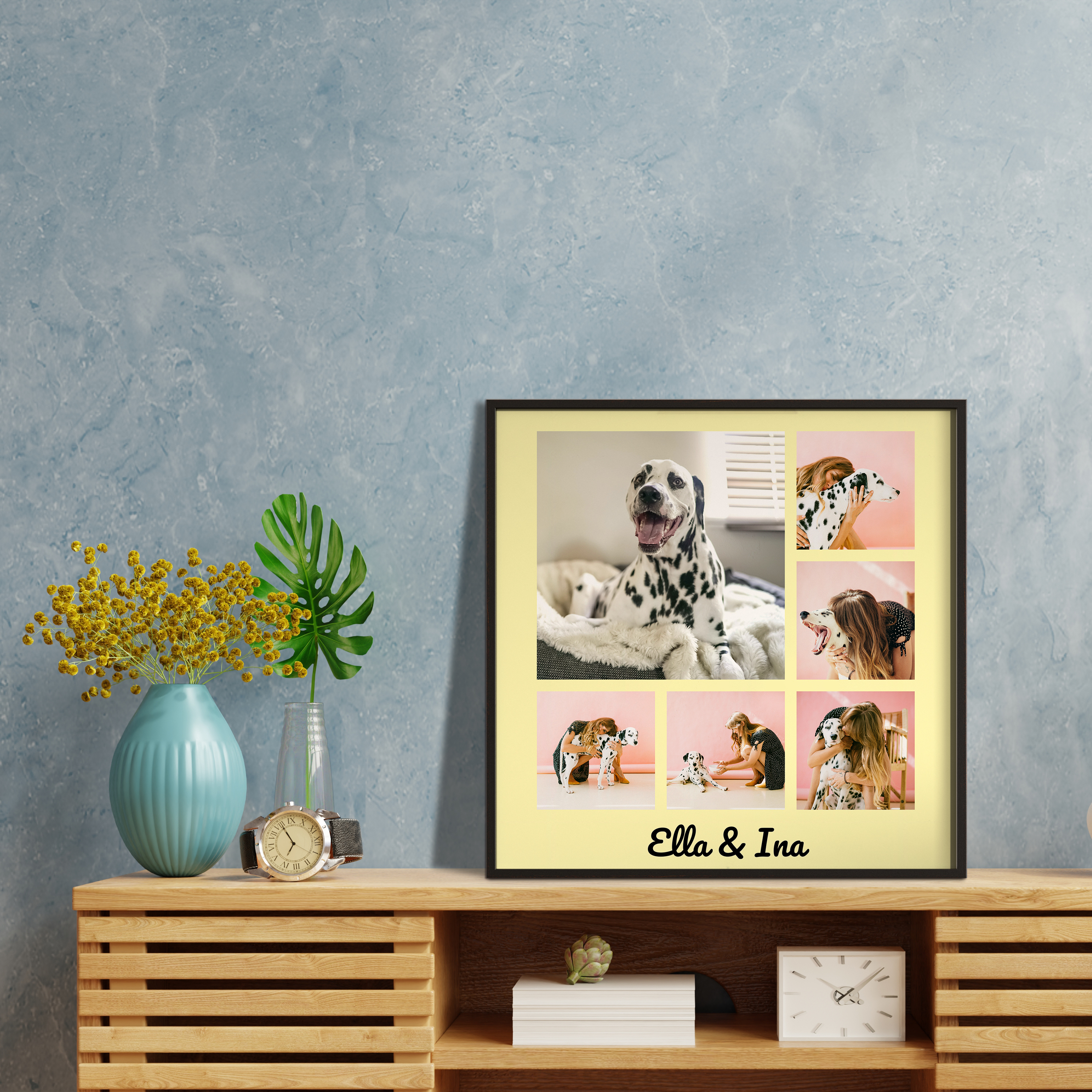 Our collages come in a variety of premium materials to suit your style. Opt for a seidenmatt Poster that resists UV rays, elevate your piece with a classic frame in natural tones, or go modern with a sleek Alu-Dibond or luxurious Acrylic glass. We also offer the option to download your creation as a high-resolution image file, making it easy for you to print as you see fit.