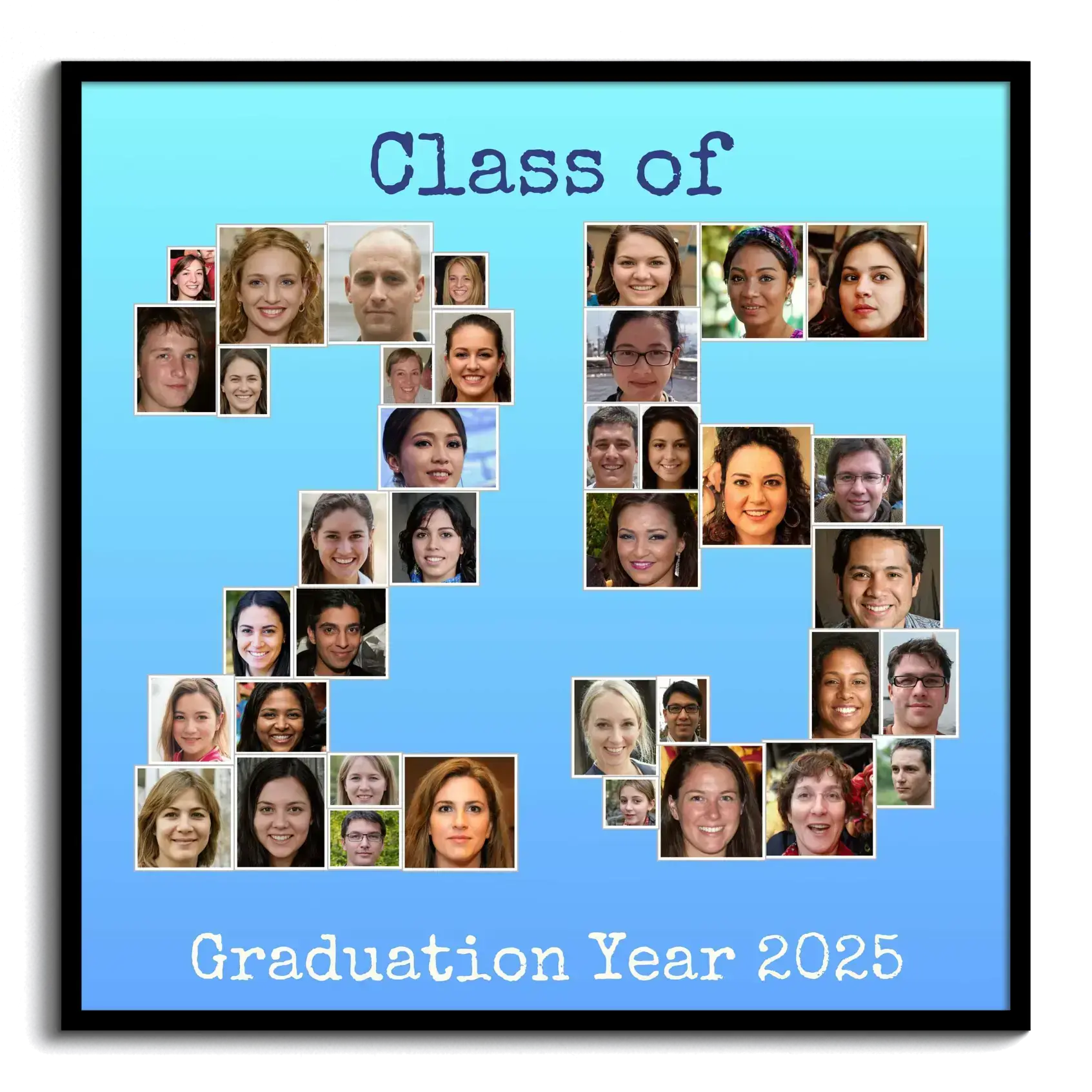 Create your own masterpiece with our customizable photo collage! Perfect for celebrating milestones like graduation year with a splash of bright color in the backdrop. This collage is an ideal keepsake for students, parents, and teachers, serving as a memorable decoration for graduation ceremonies or classrooms, and even as a yearbook cover.