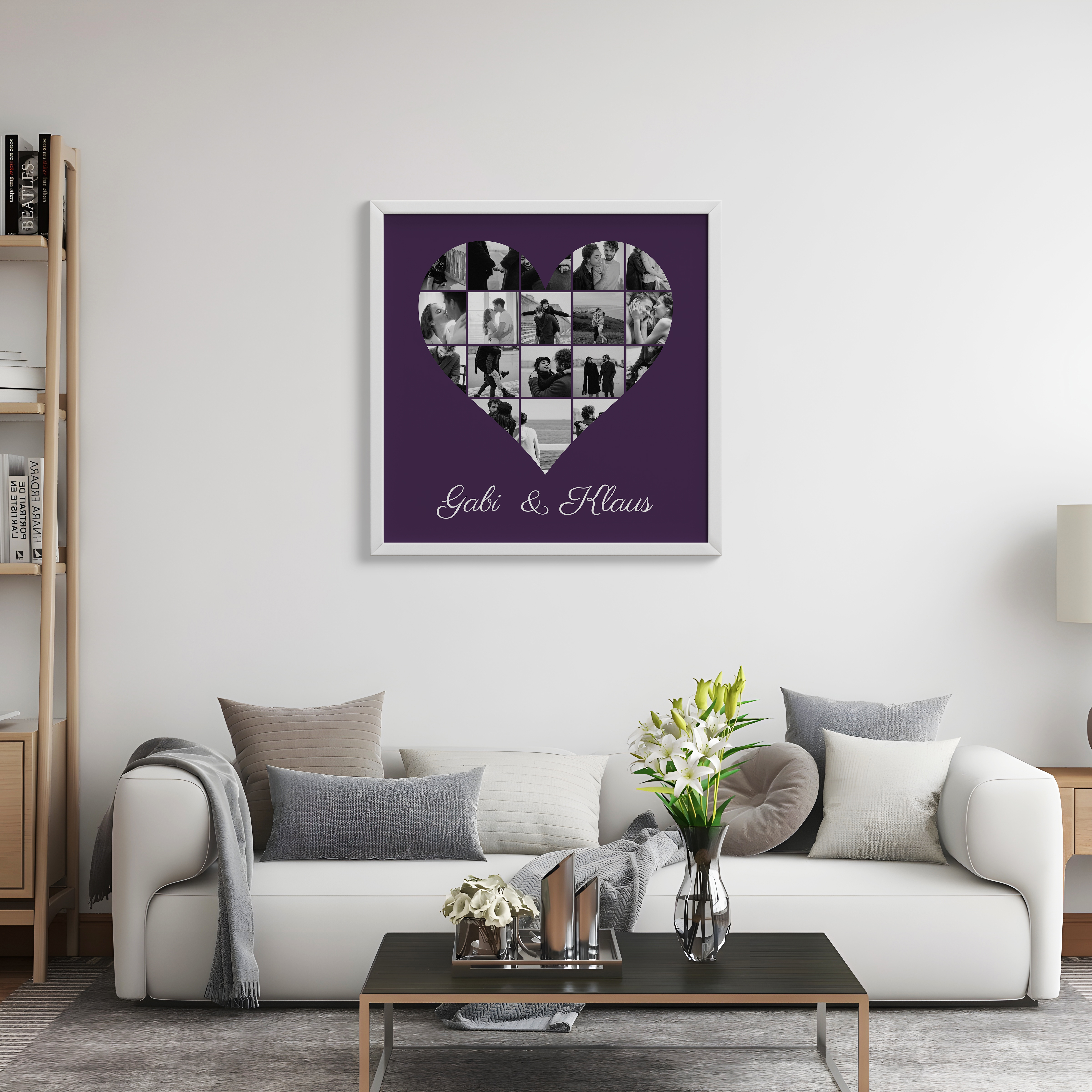 Elegant heart-shaped photo collage on canvas, perfect for cherishing shared memories.