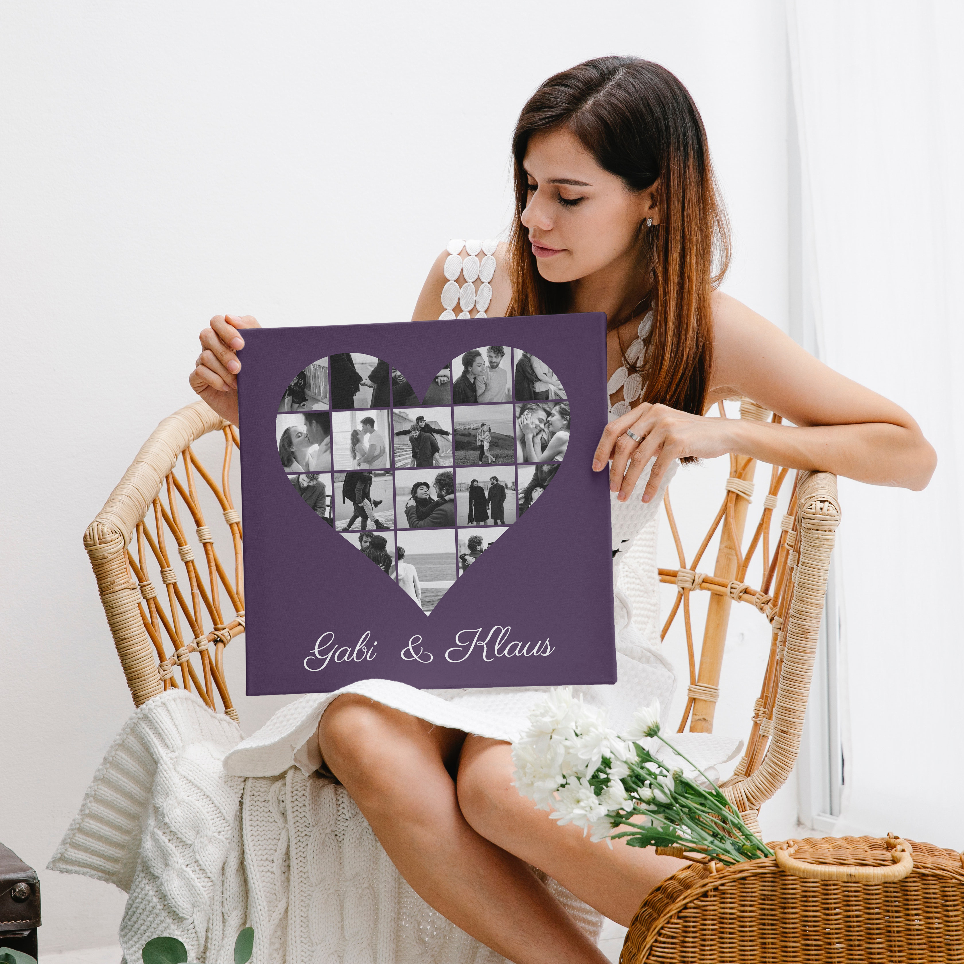 Create Your Own Heart-Shaped Photo Collage Canvas – Personalized for Couples