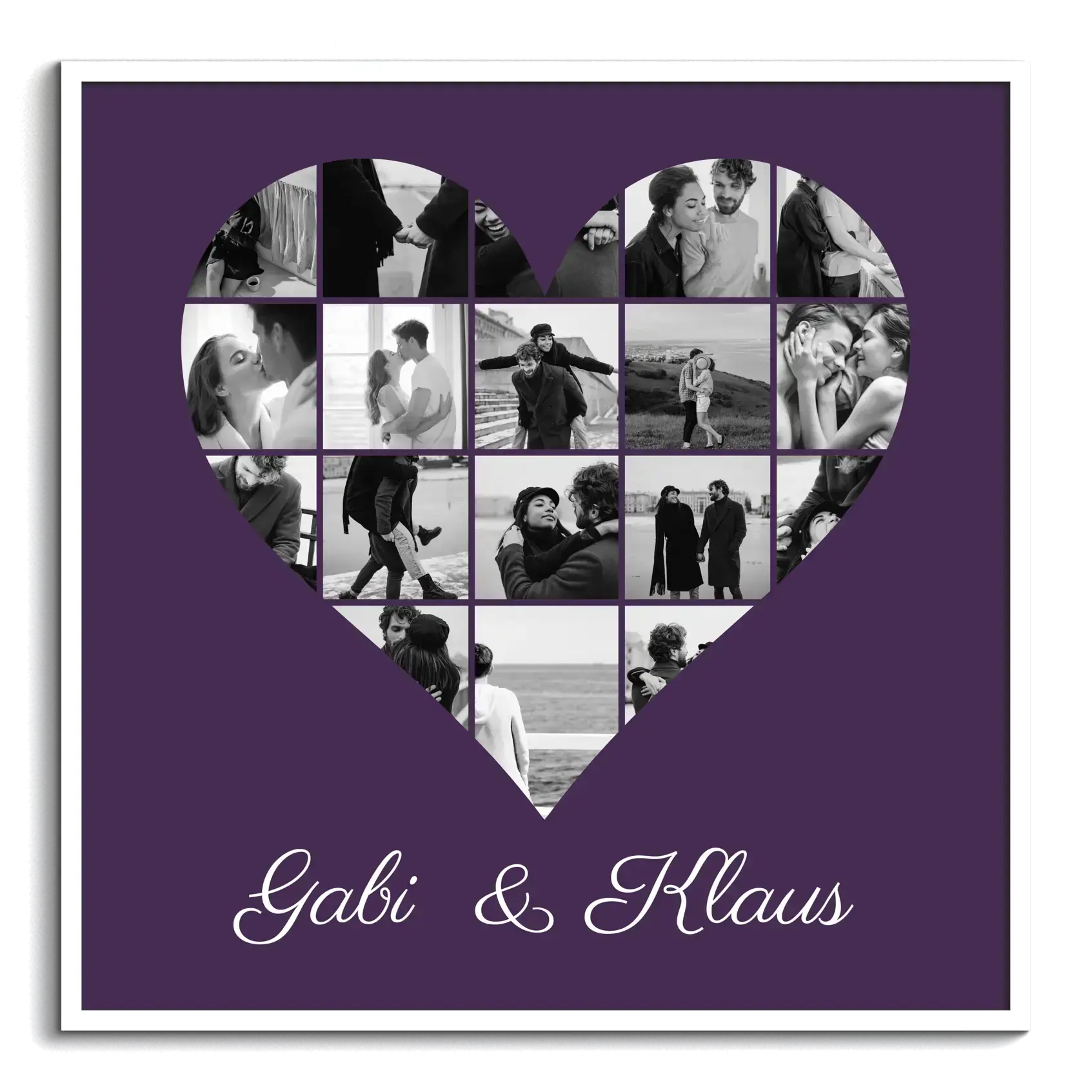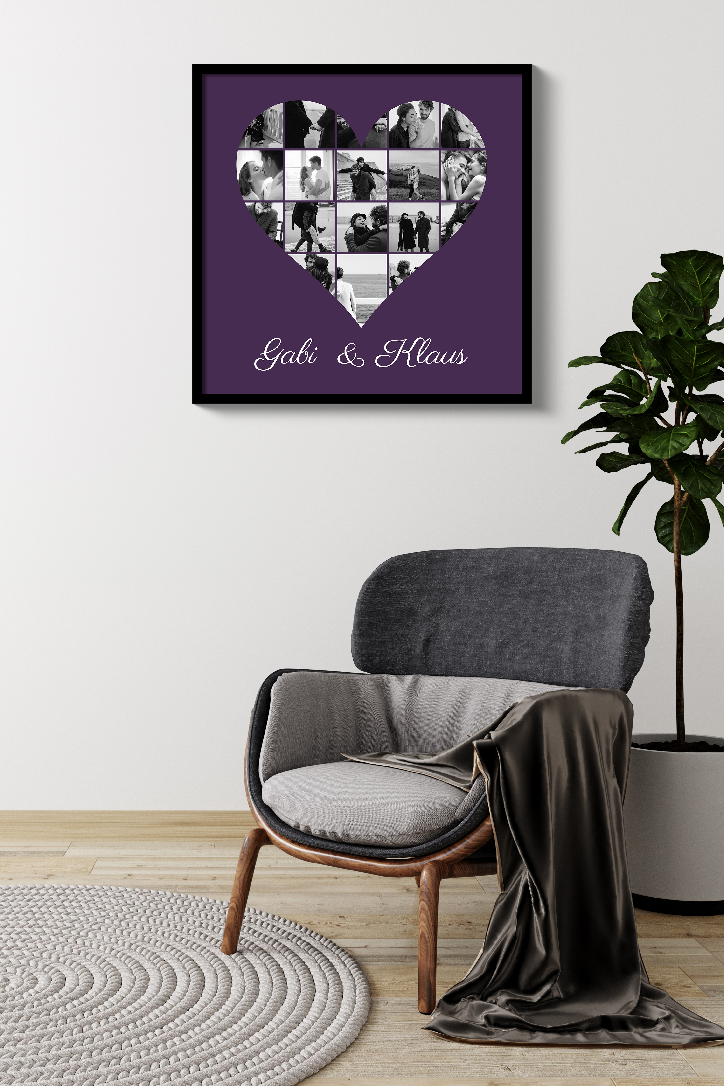 To create your own heart collage, we have different templates available for you. They vary in style and the number of images you can use. Just click on one of the examples above to select the desired template and configure it to your liking.