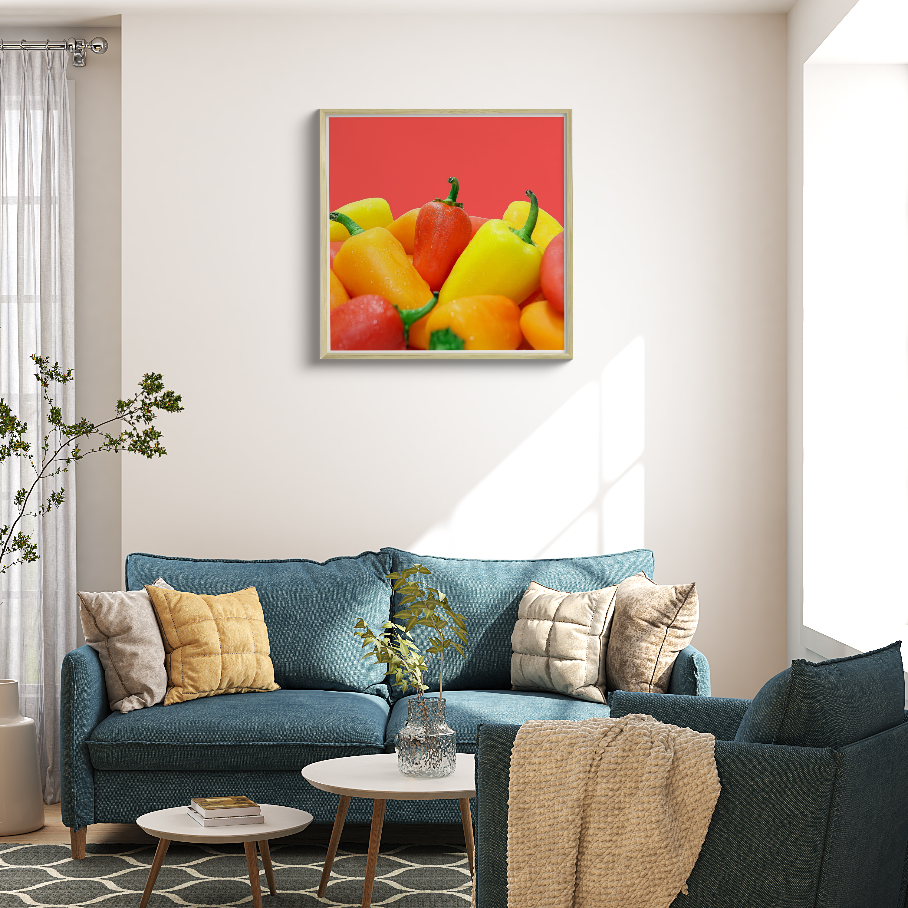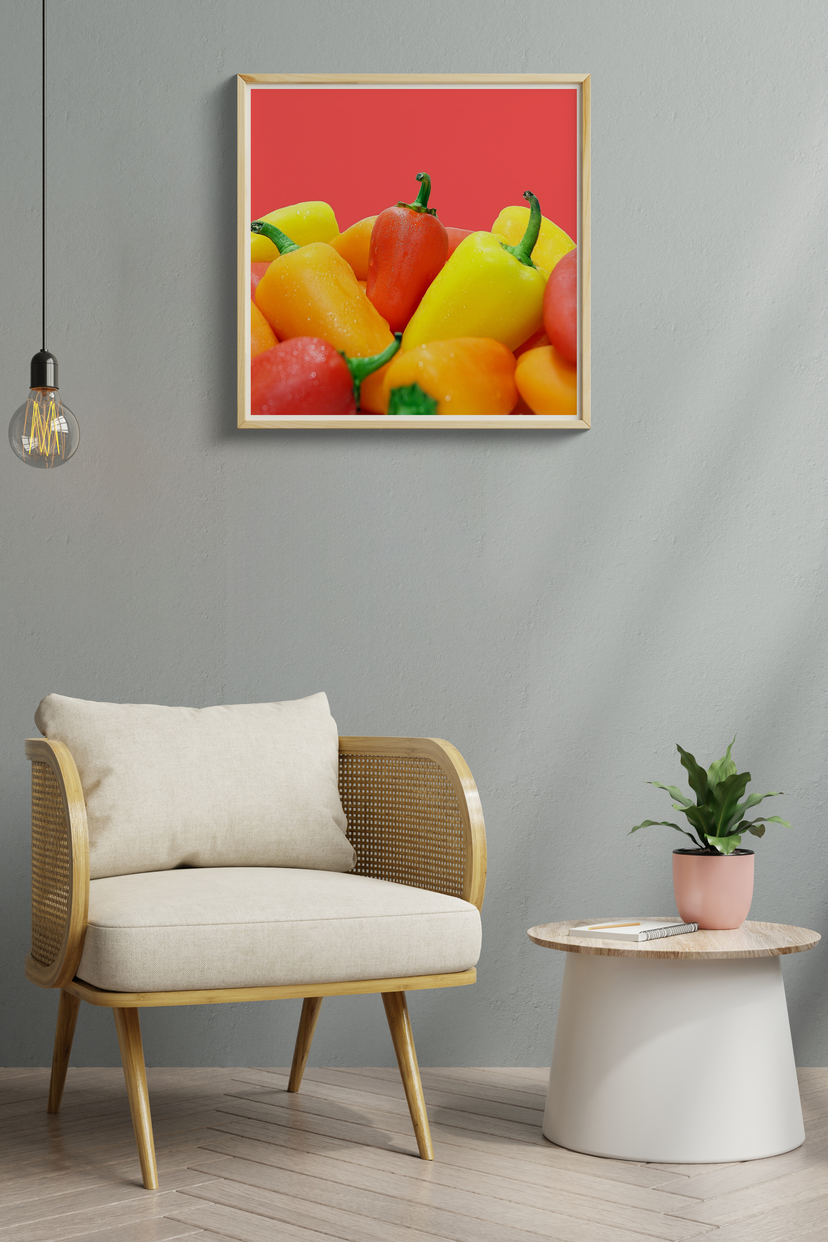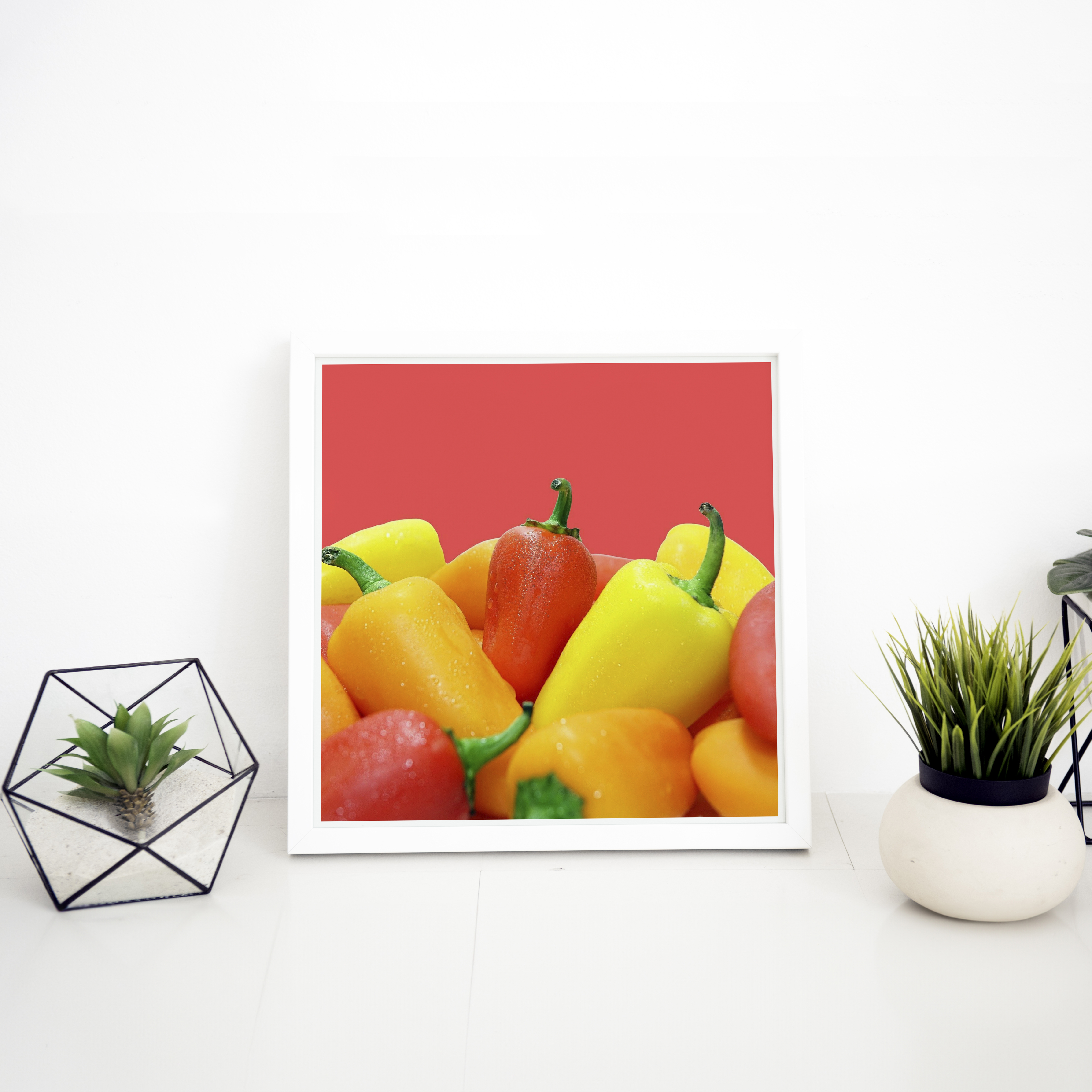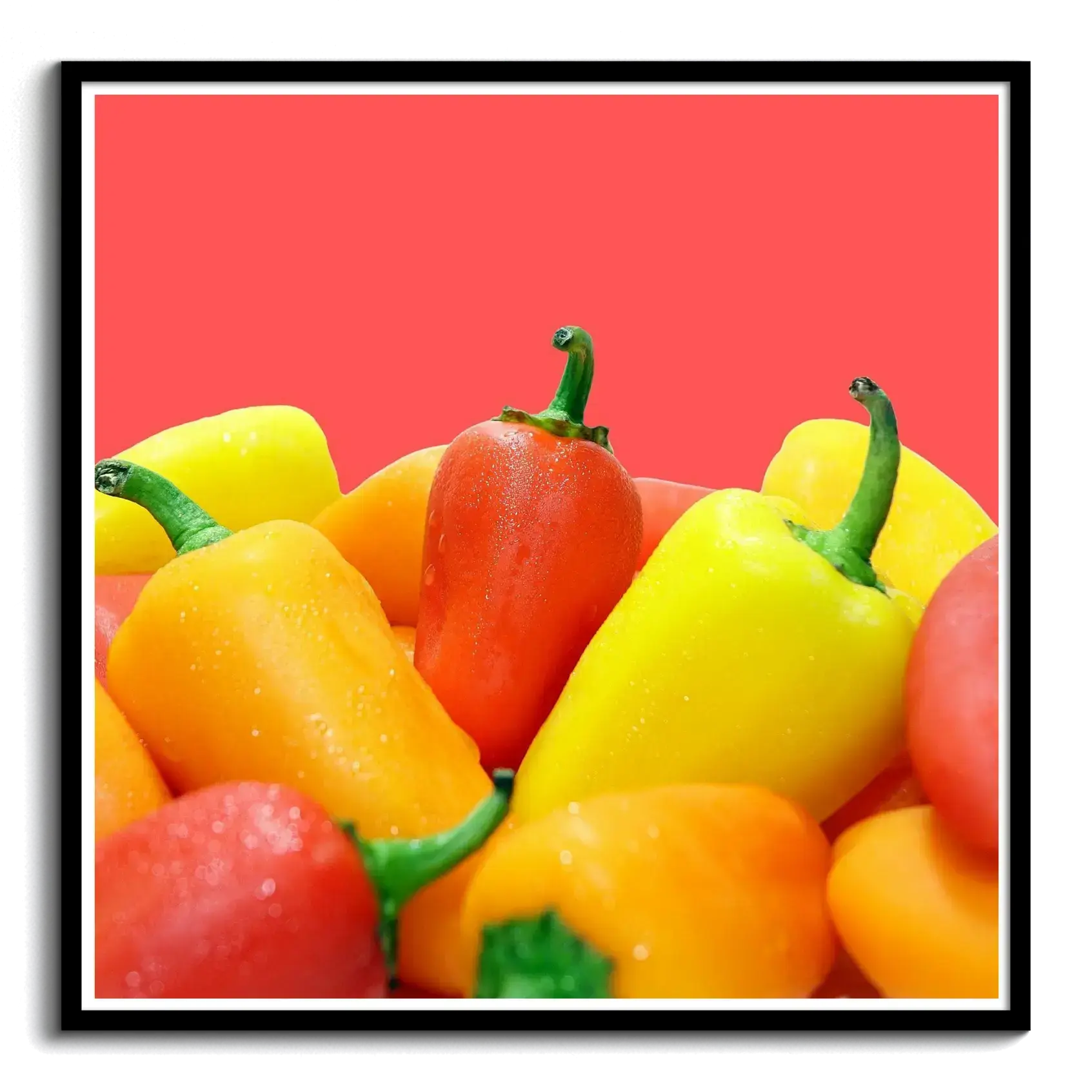 Create your personalized photo collage now! Imagine a stunning canvas adorned with vibrant images of colorful peppers, capturing the essence of life’s vivacious moments. This high-quality print on canvas is designed for those who wish to artfully display treasured memories or gift something truly special to friends and family. With customizable motifs, colors, and layouts, you can create a piece that's uniquely yours.
