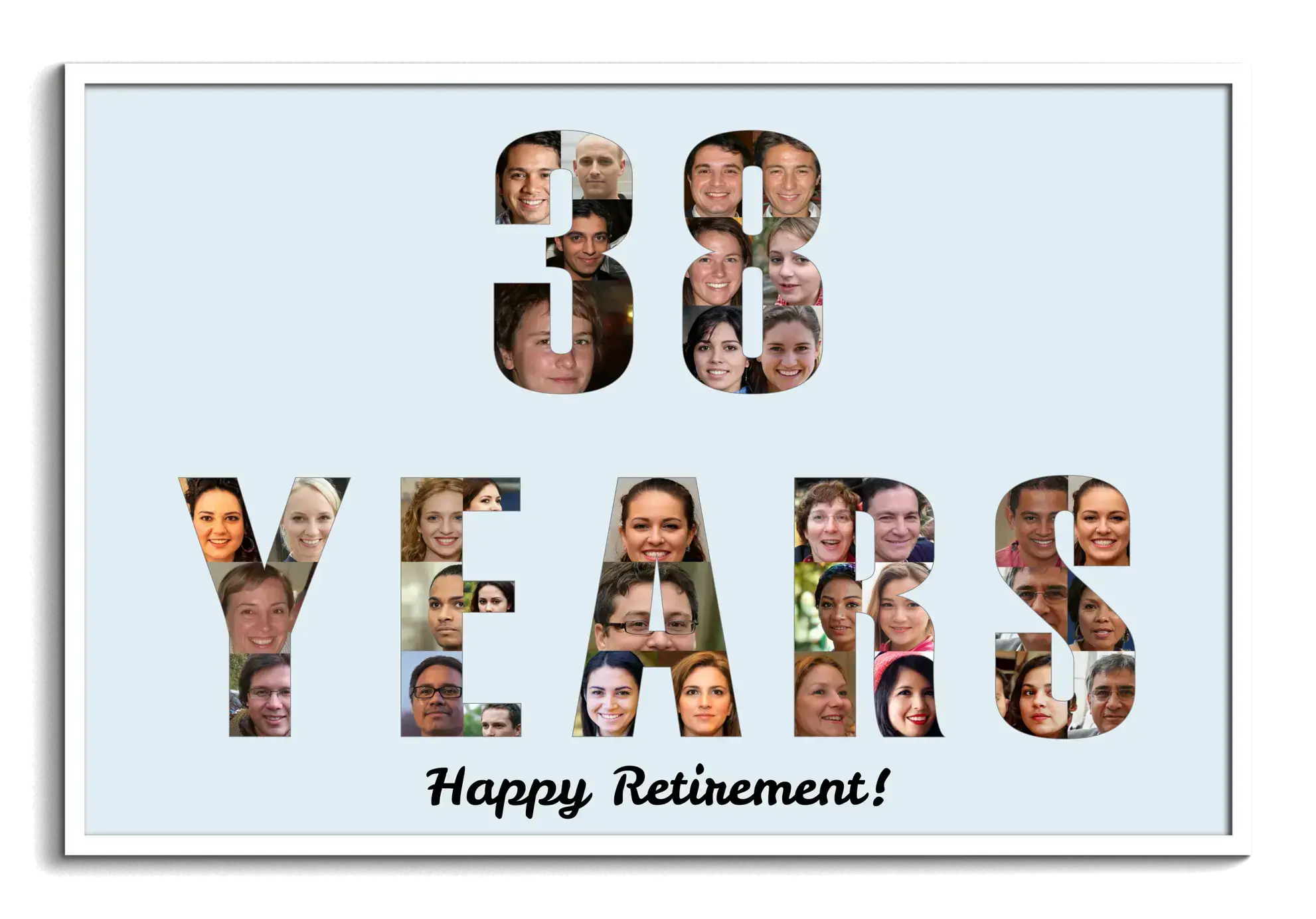 Celebrate 38 years with a personalized retirement photo poster, perfect for home décor.