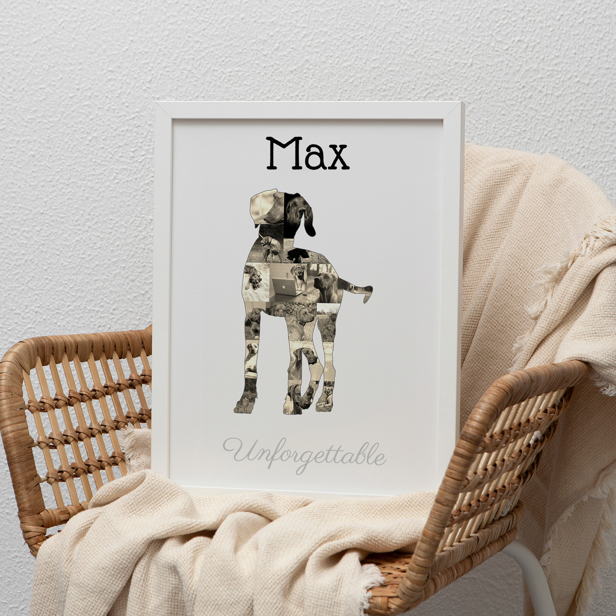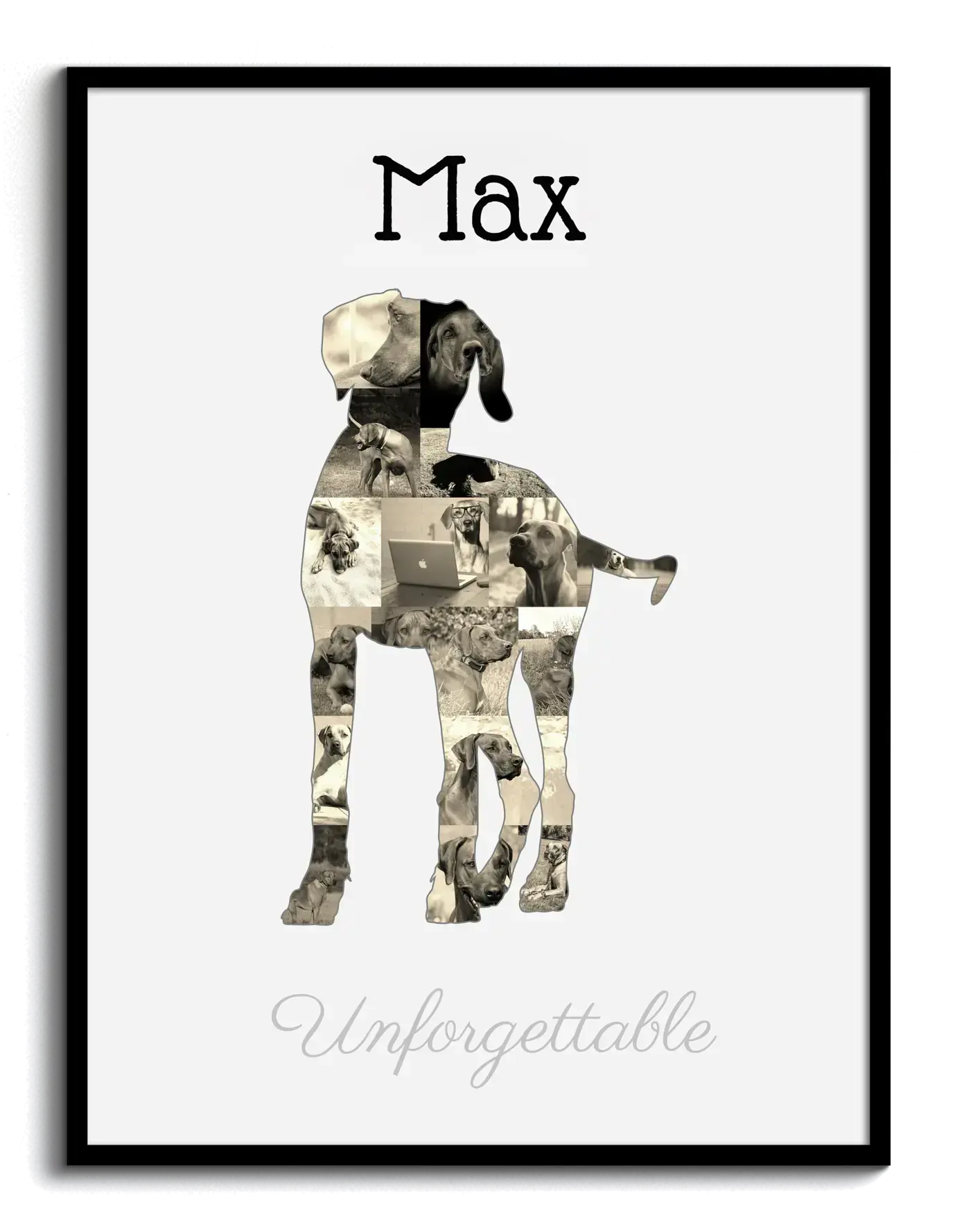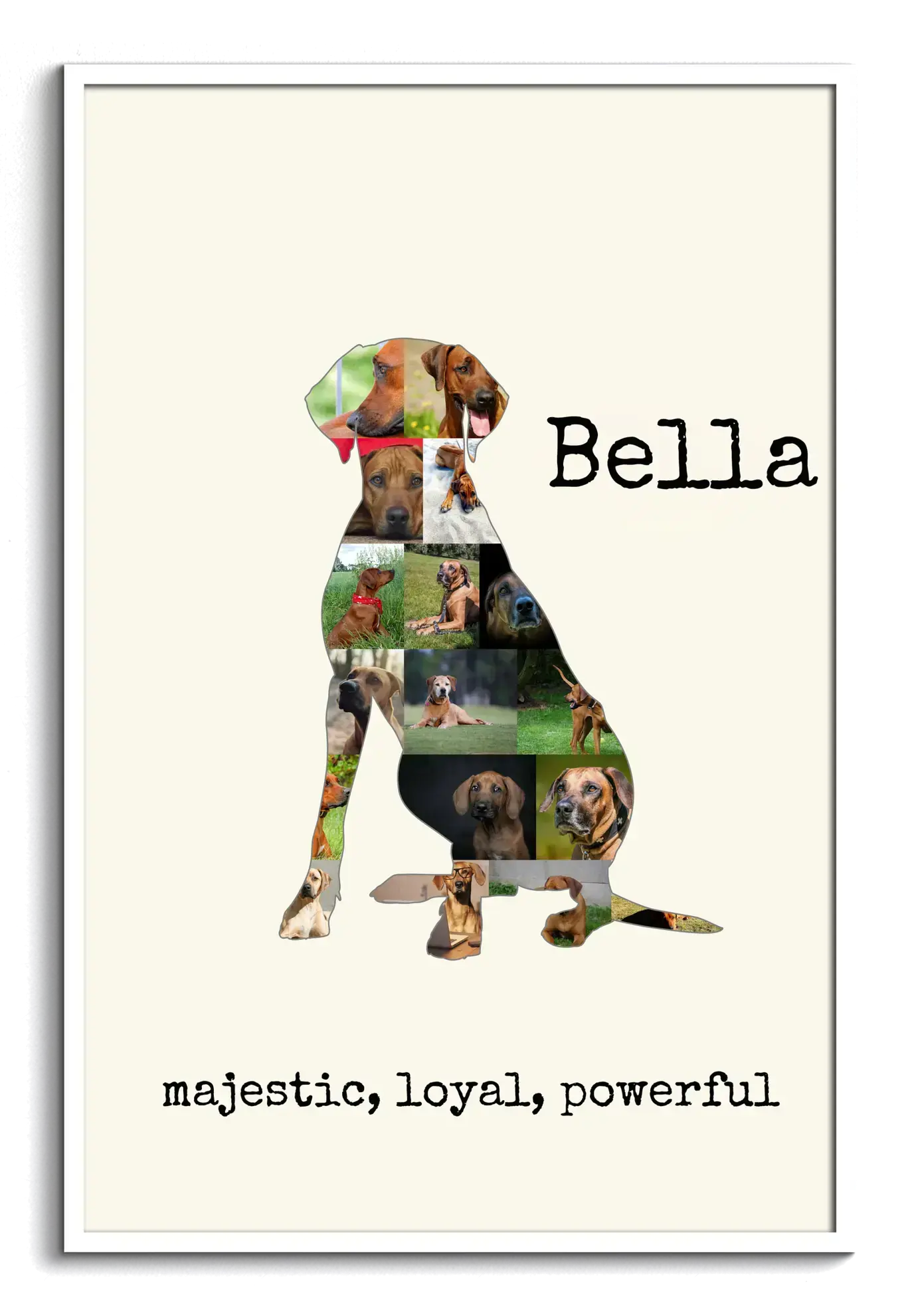 Create a unique Rhodesian Ridgeback silhouette collage with your cherished photos and custom text.