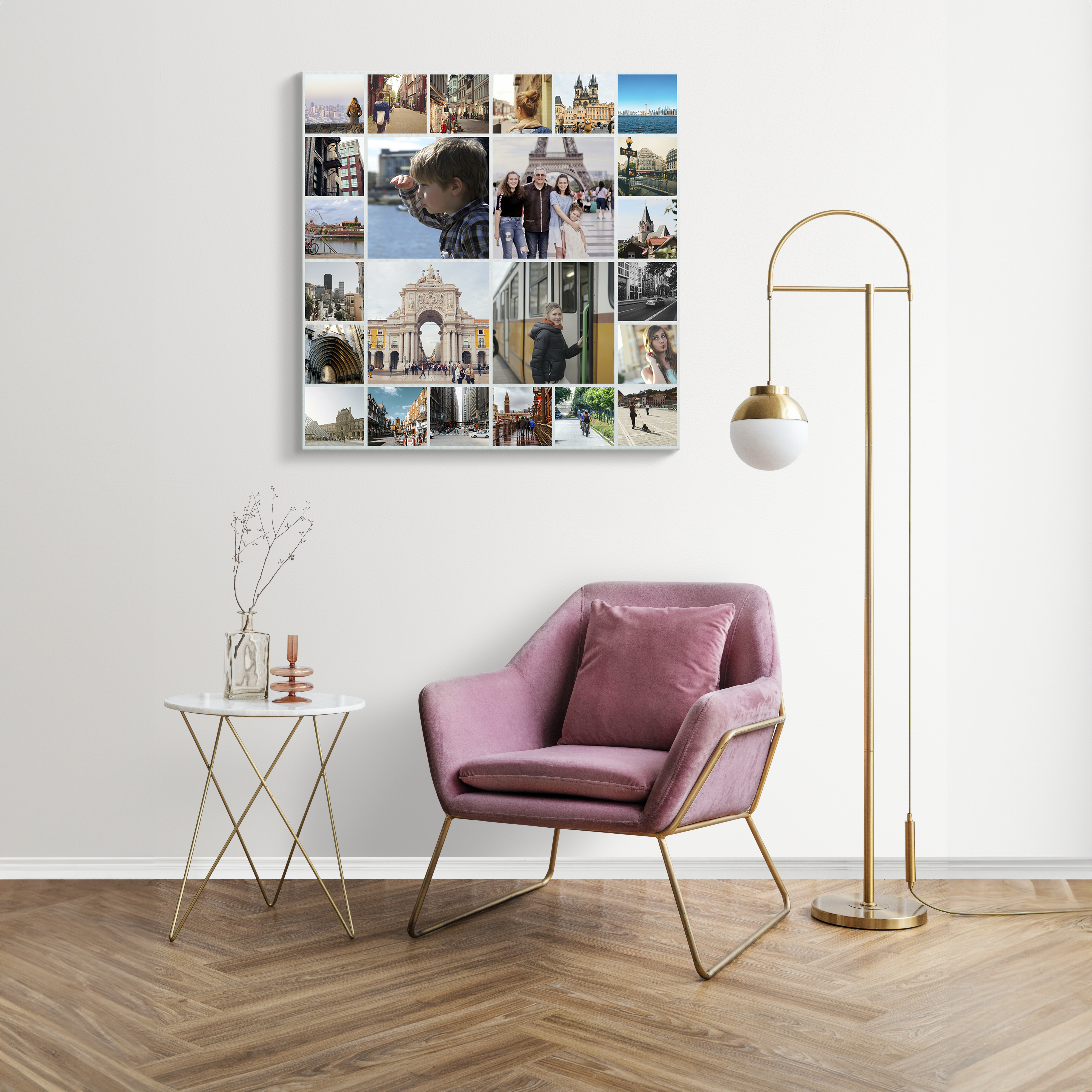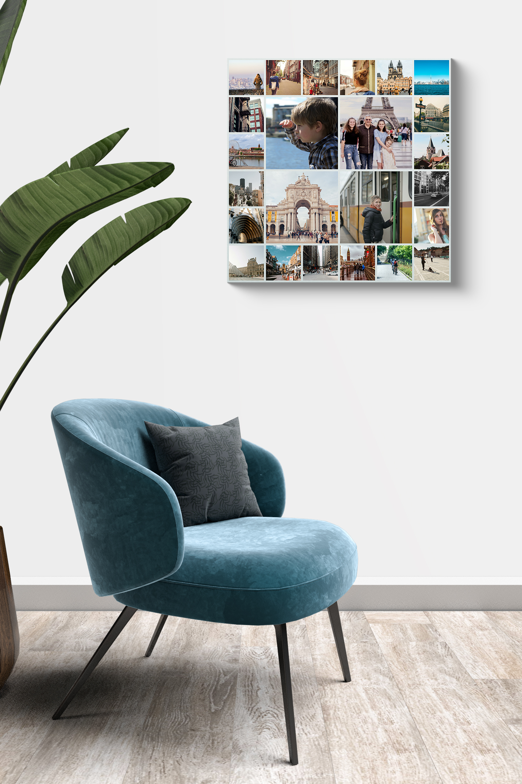 Minimalist square collage on Alu-Dibond, perfect for displaying vacation memories.
