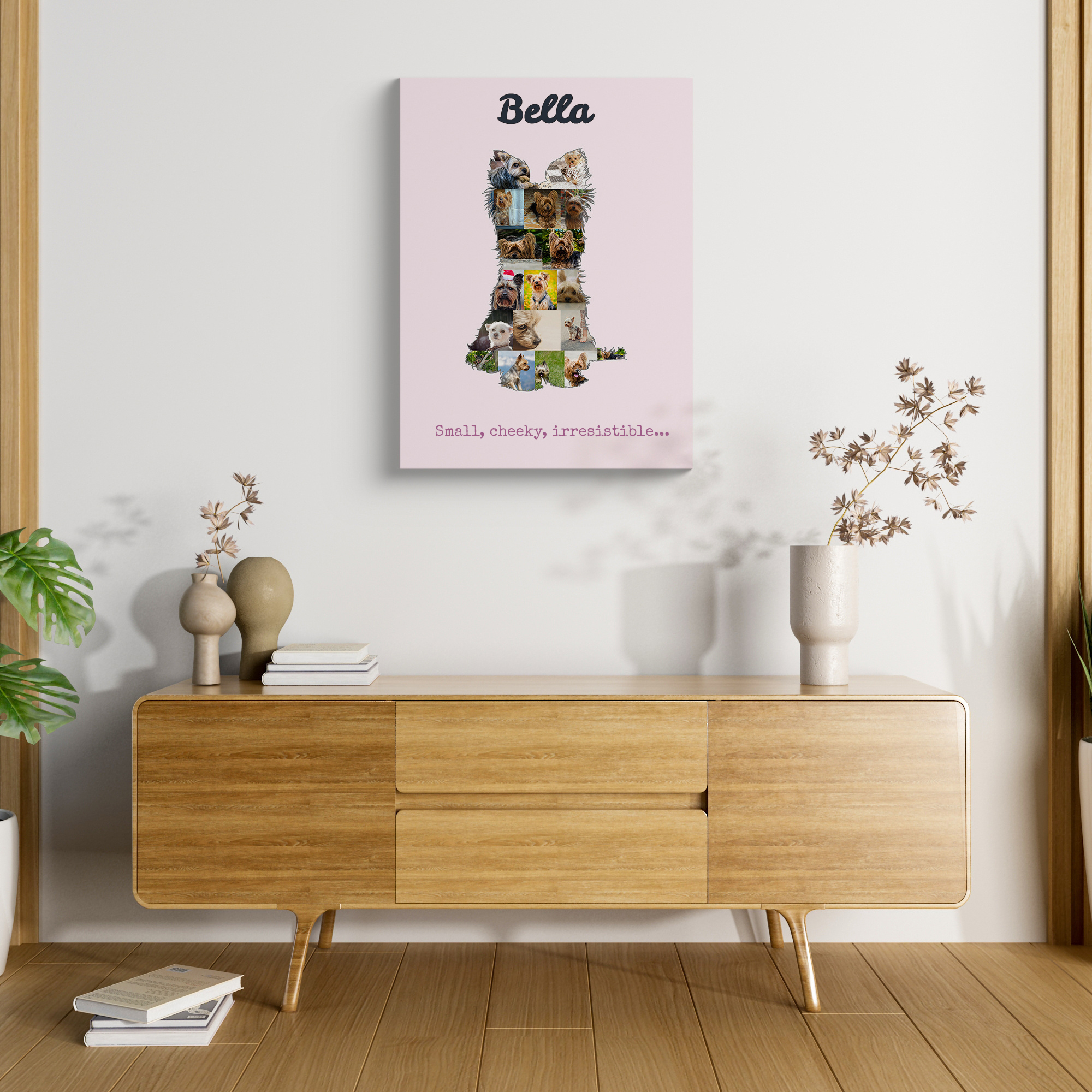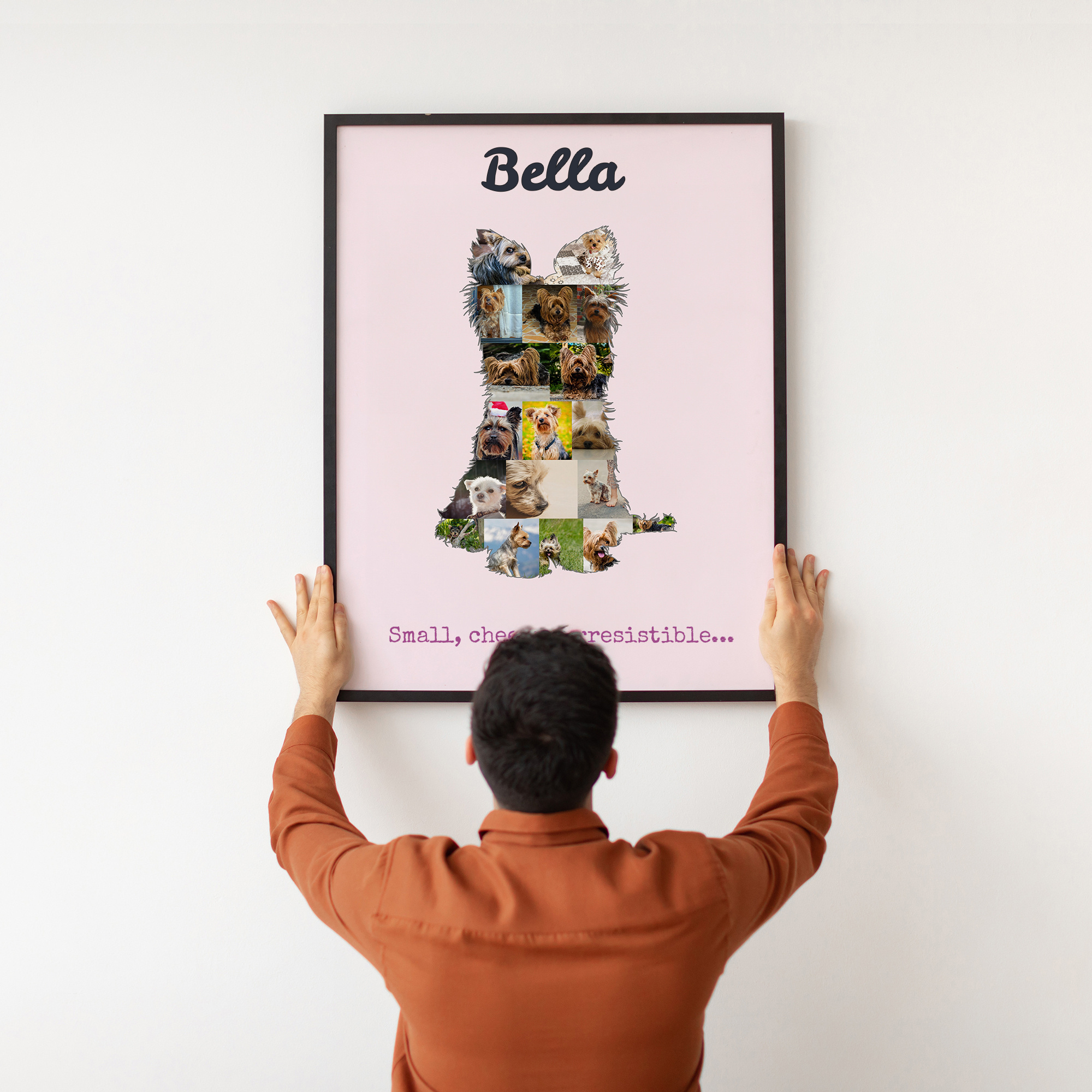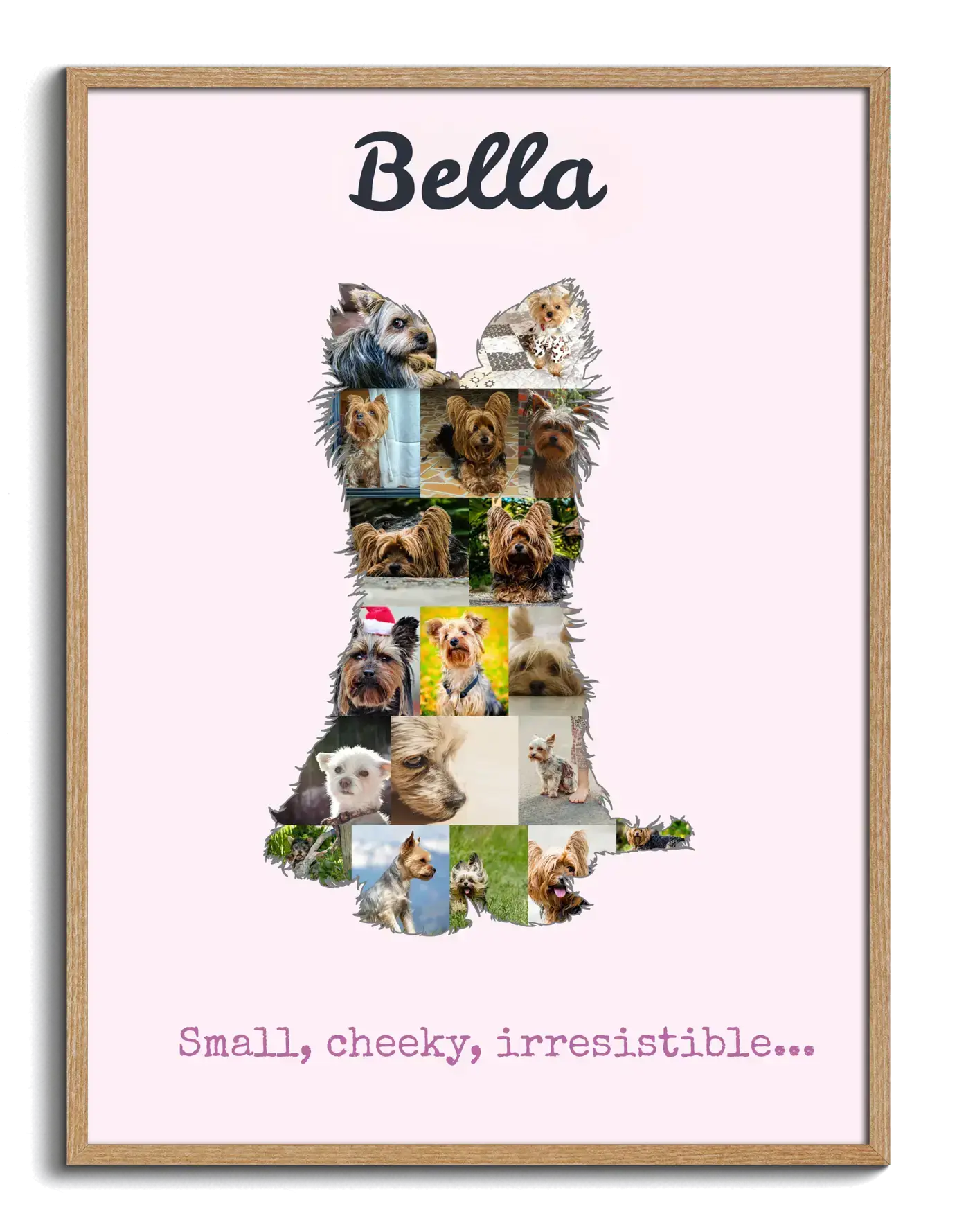 Perfect for any occasion, a Yorkshire Terrier collage makes a delightful birthday gift, charming anniversary surprise, or a touching memorial piece. Celebrate your furry friend or gift a fellow dog lover something they'll treasure forever.