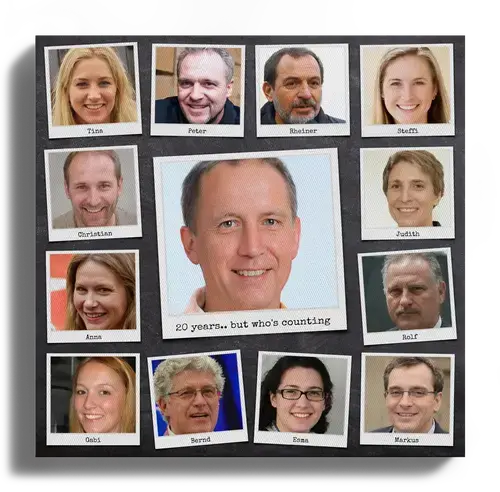 Give special congratulations for a company anniversary or retirement with photos from your shared time with favorite colleagues.