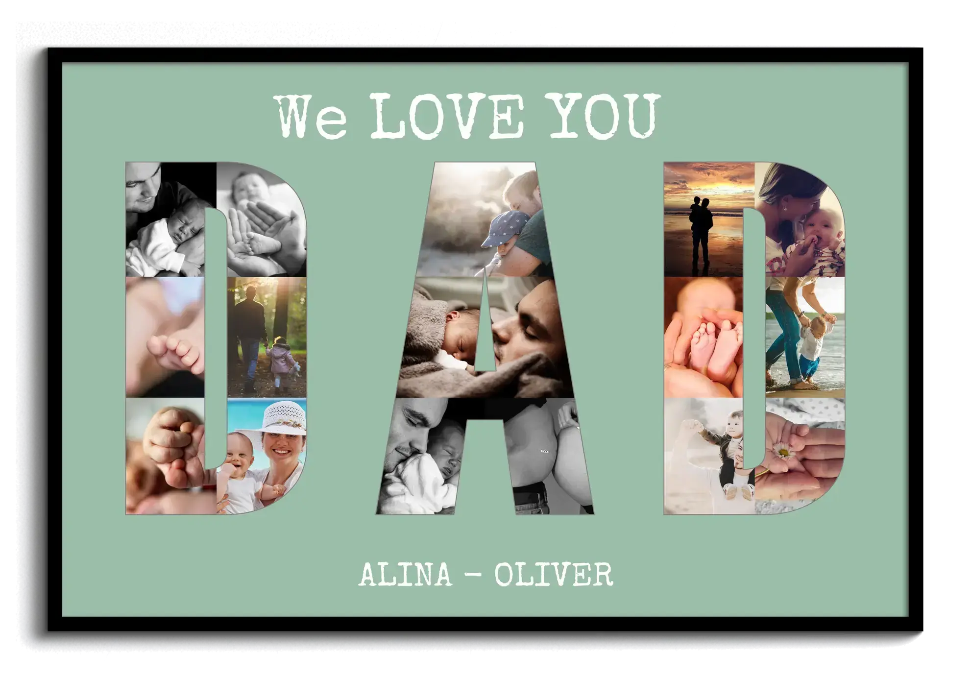 Celebrate Dad with a personalized "We LOVE YOU DAD" photo collage!
