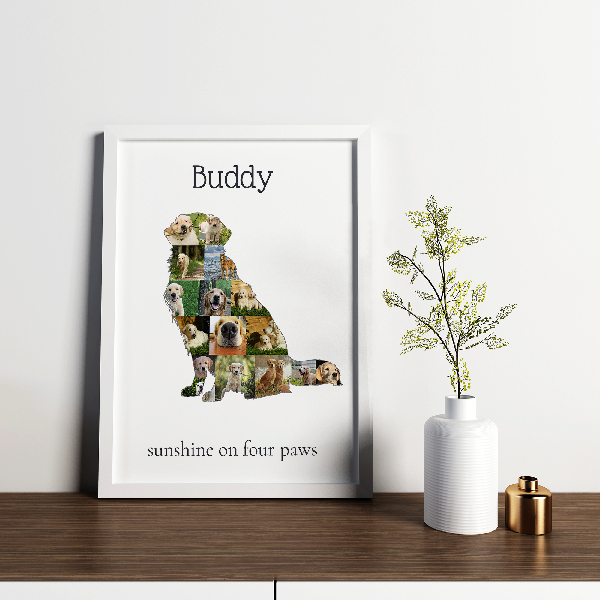 These personalized collages make perfect gifts for any occasion. Whether you're celebrating a beloved pet's birthday, remembering a past companion, or surprising a friend with a thoughtful gift, this photo collage will capture the happiness and memories shared with your Golden Retriever.