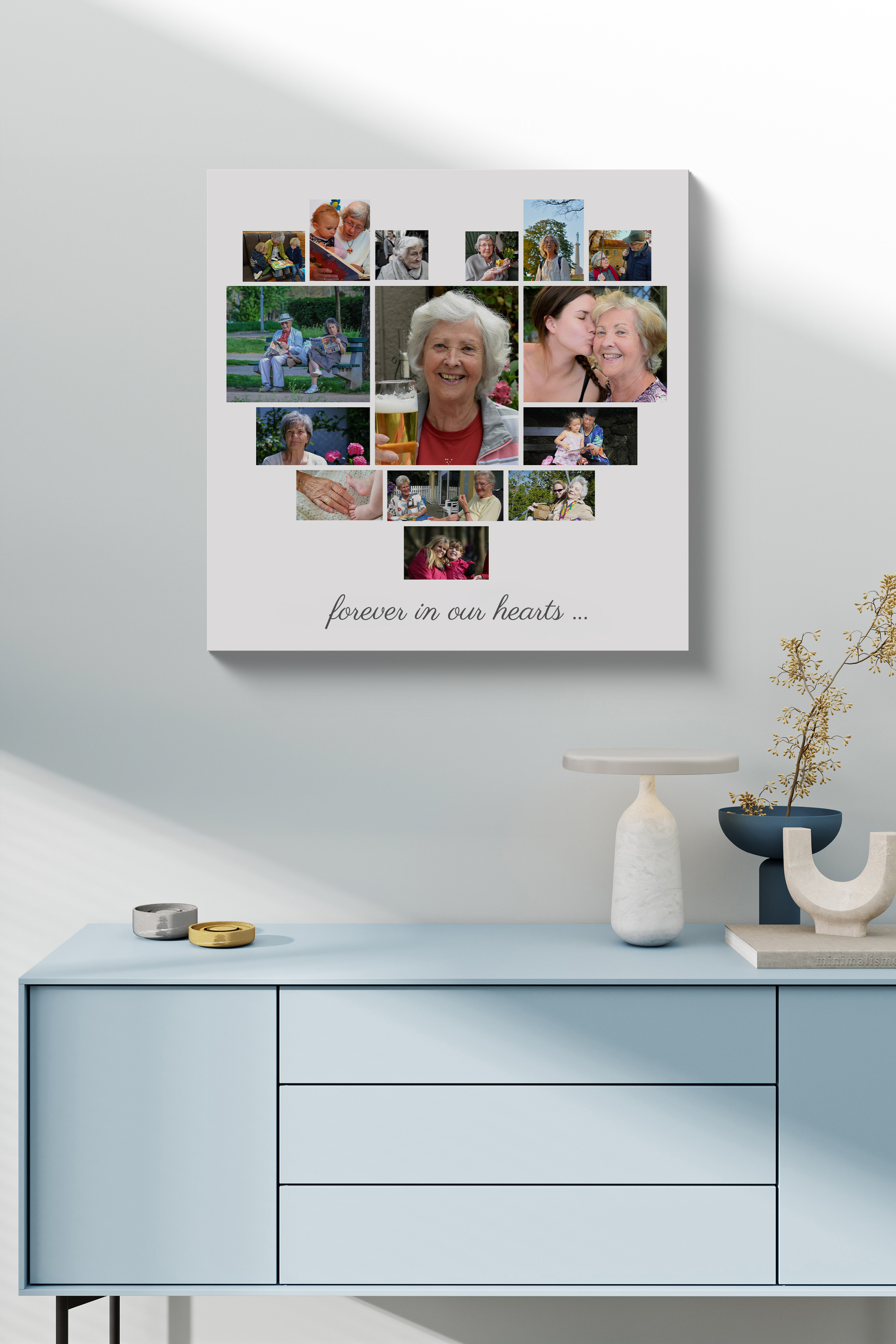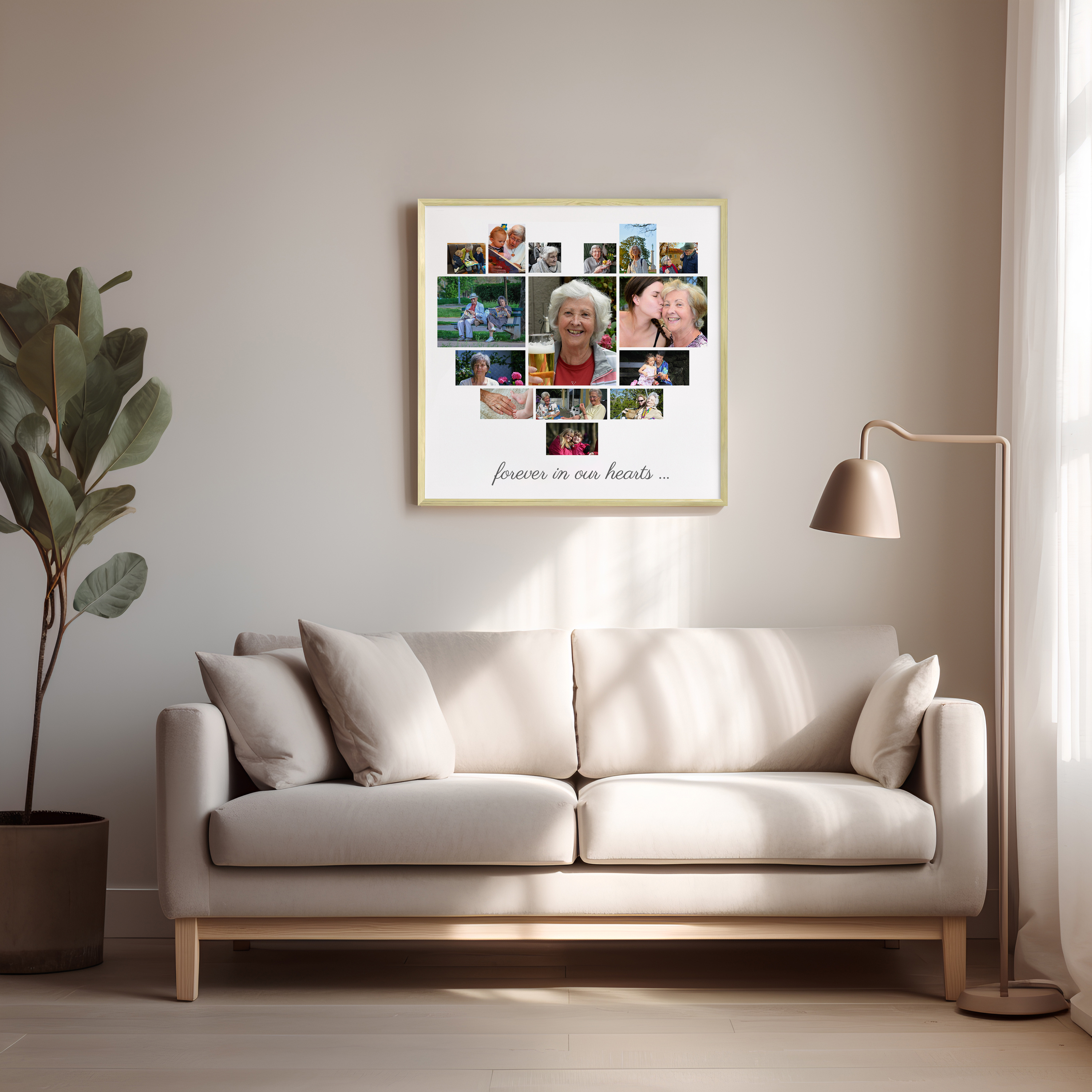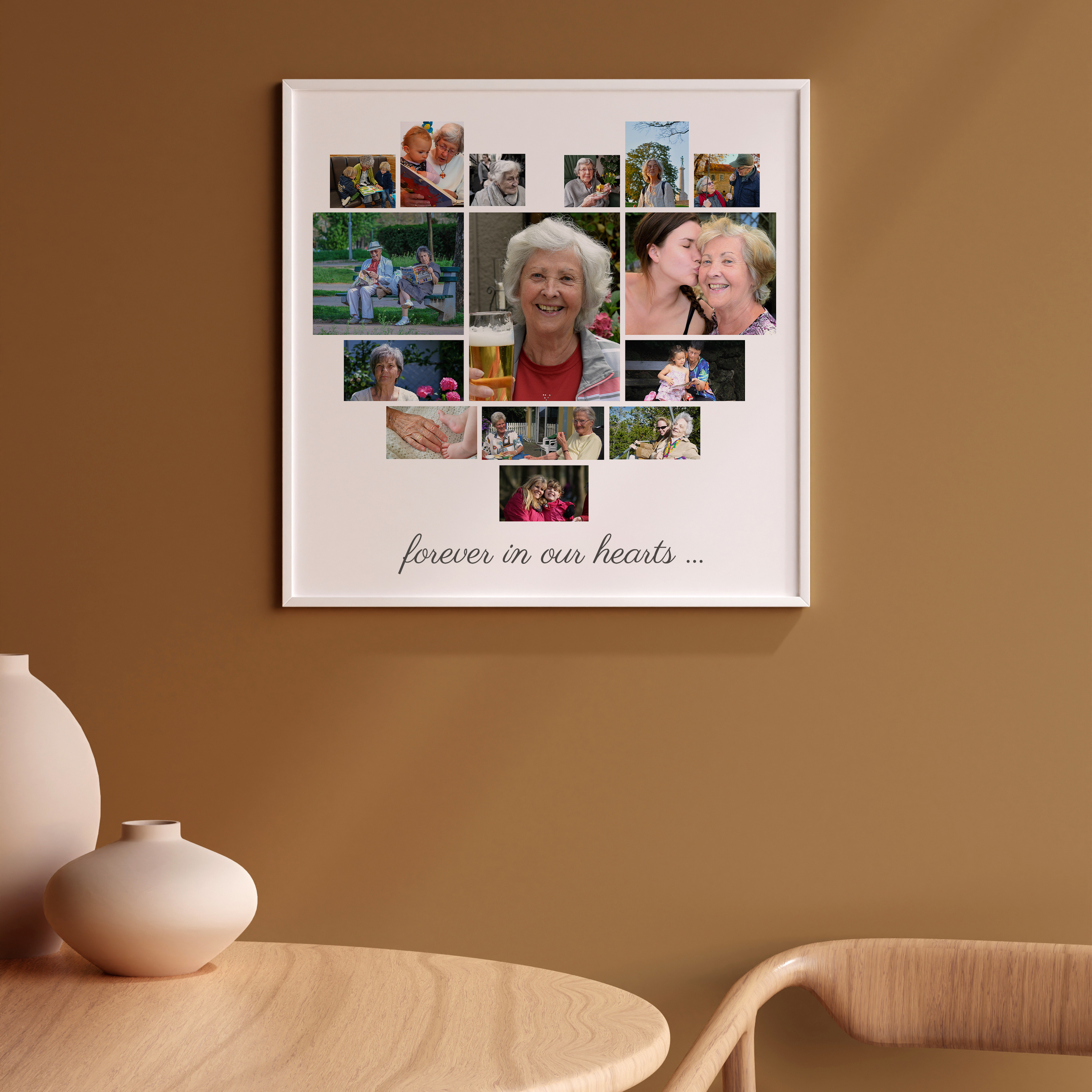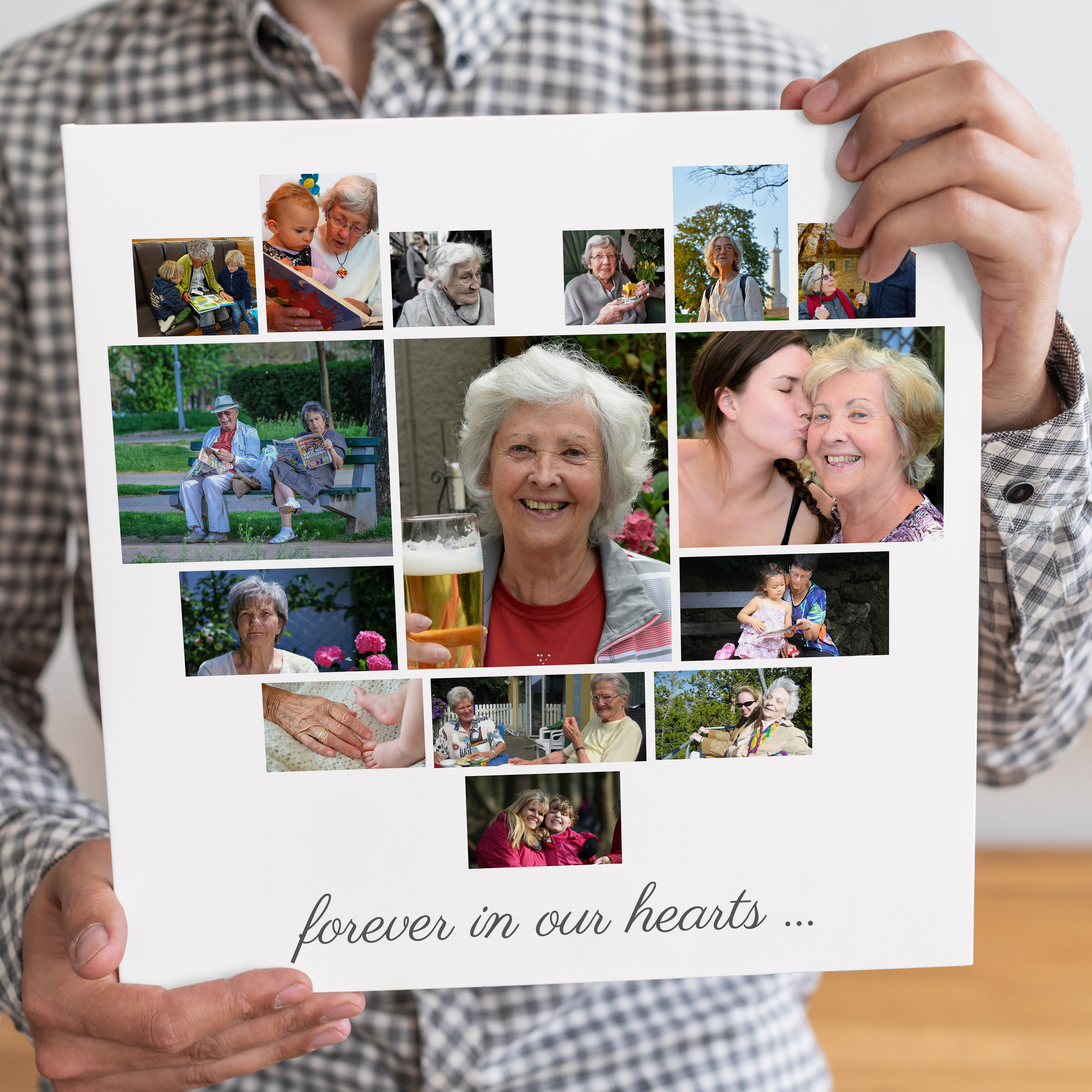 Create a Heart-Shaped Memorial Photo Collage: "Forever in My Heart"