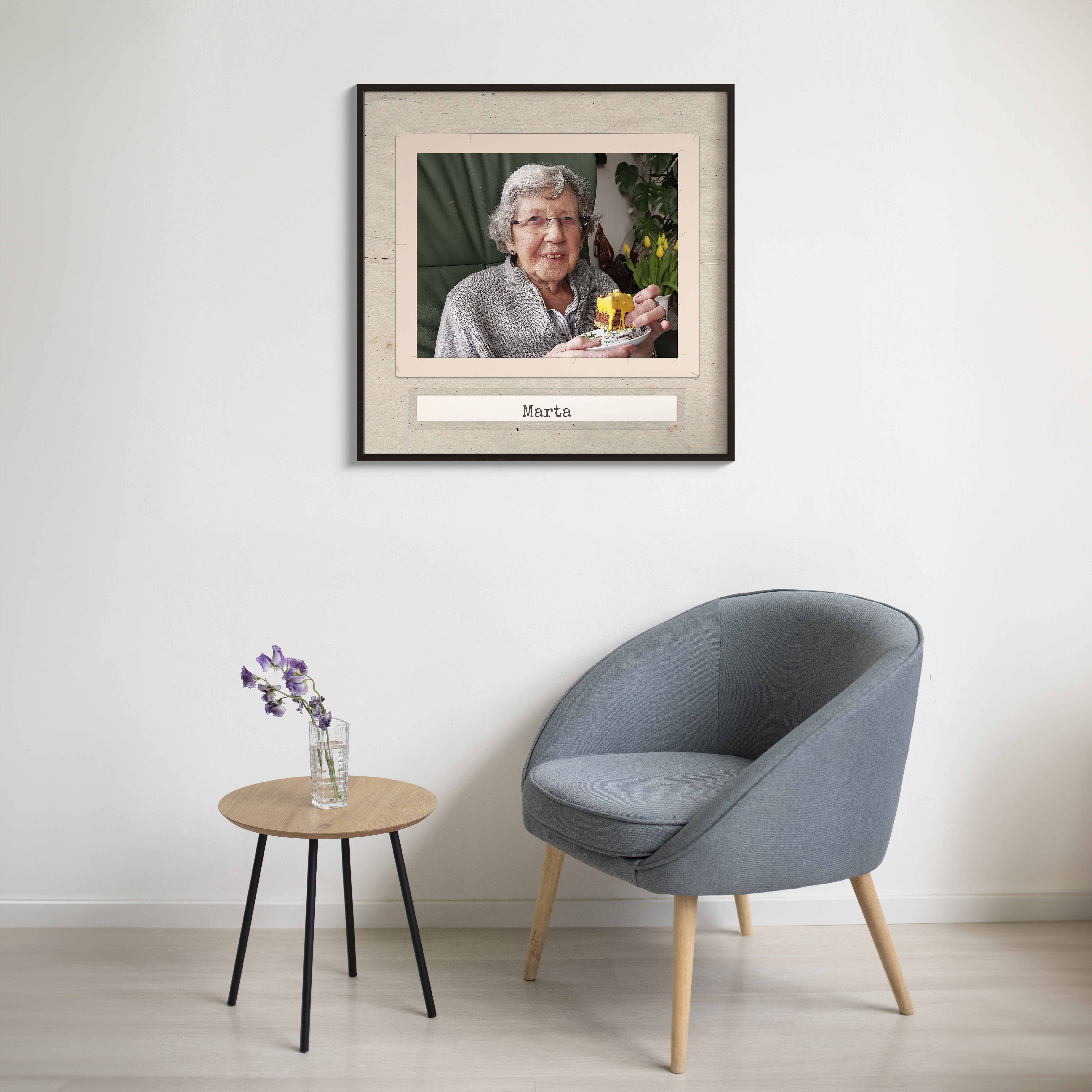 Elegant memorial photo with retro style, customizable for cherished tributes.