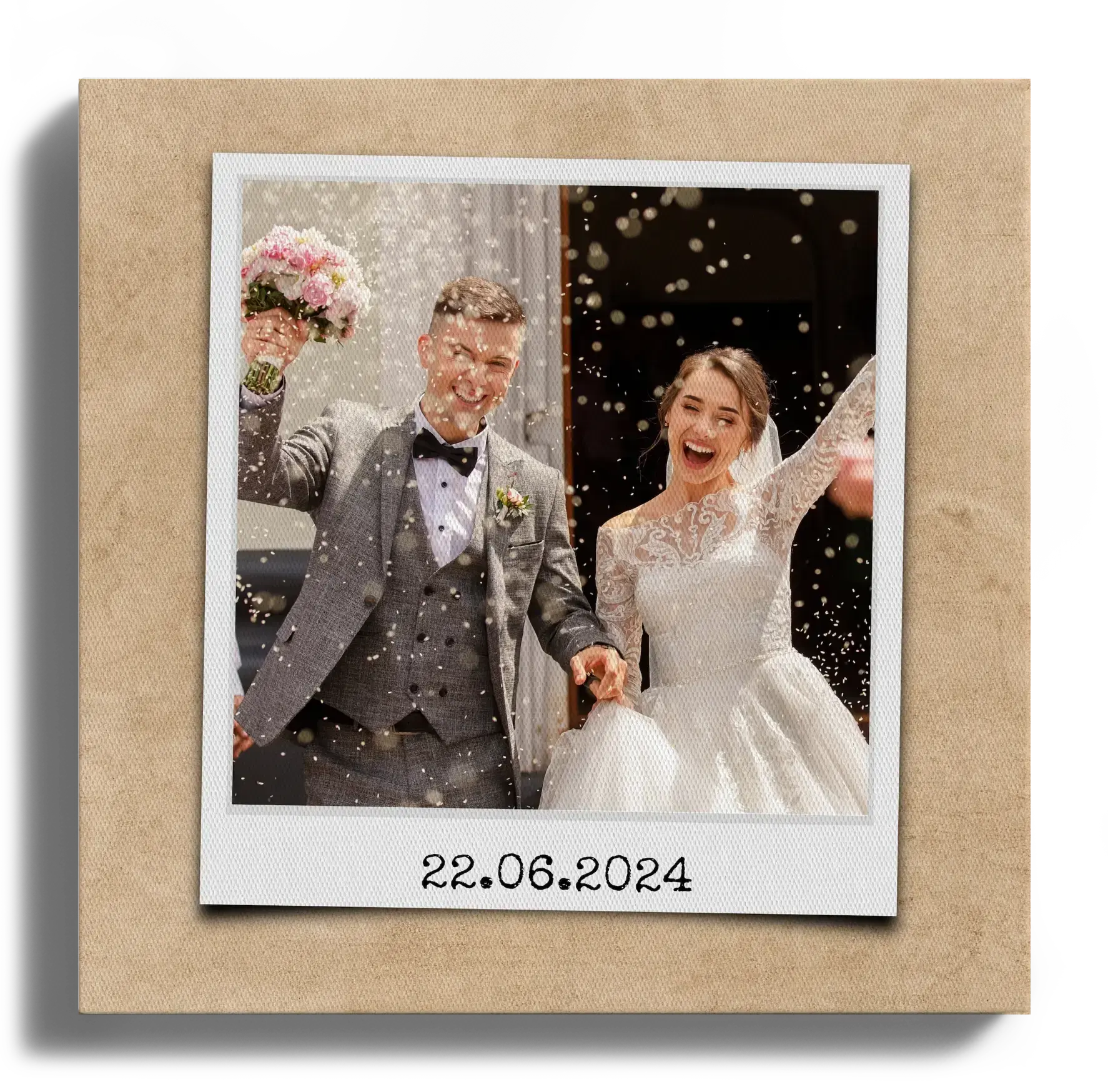 Timeless wedding memory: Polaroid-style print with custom date and personalized text.